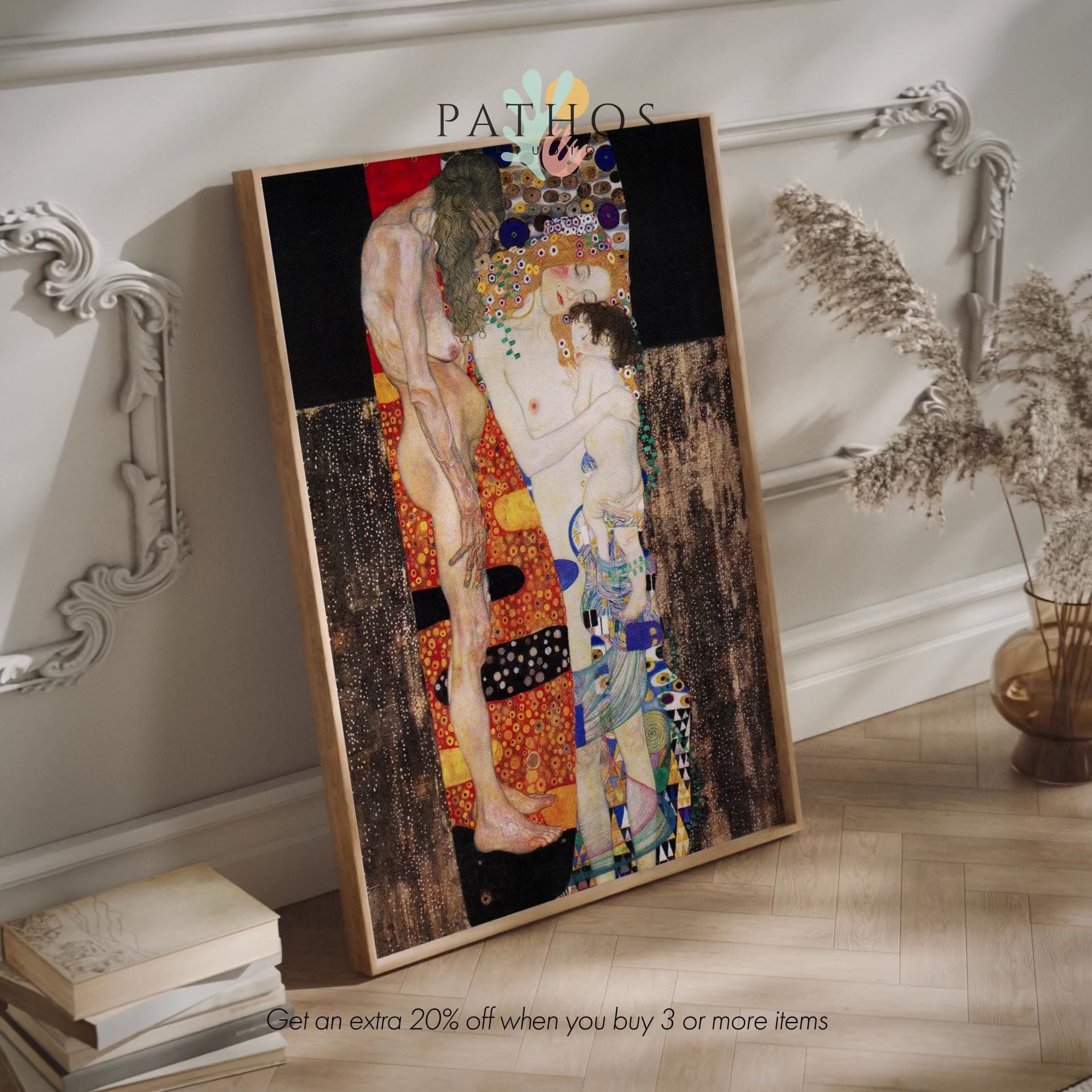 Gustav Klimts klassische Öl-auf-Leinwand-Gemälde mit dem Titel „Drei Zeitalter der Frau“, erhältlich als hochwertiger Giclée-Druck und mit verschiedenen Rahmenoptionen.