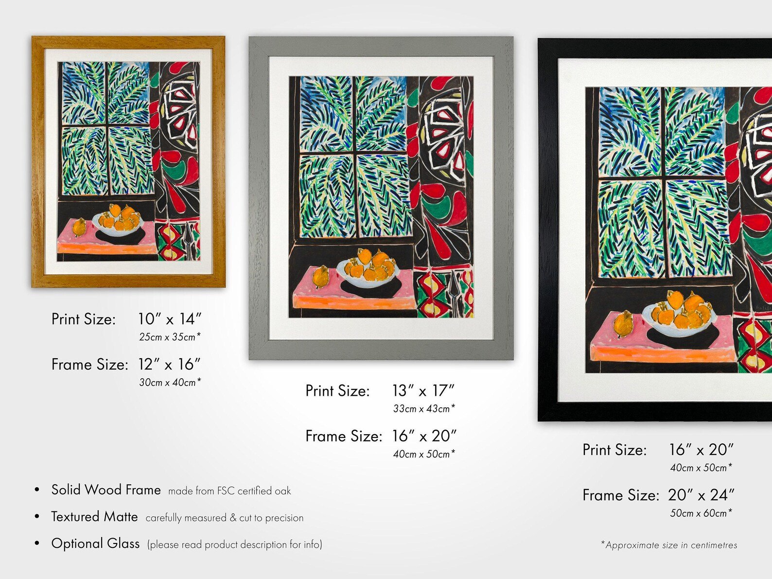 Bitte sehen Sie sich die entsprechenden Bilder für unsere Auswahl an Rahmenoptionen und detaillierte Größeninformationen an.
