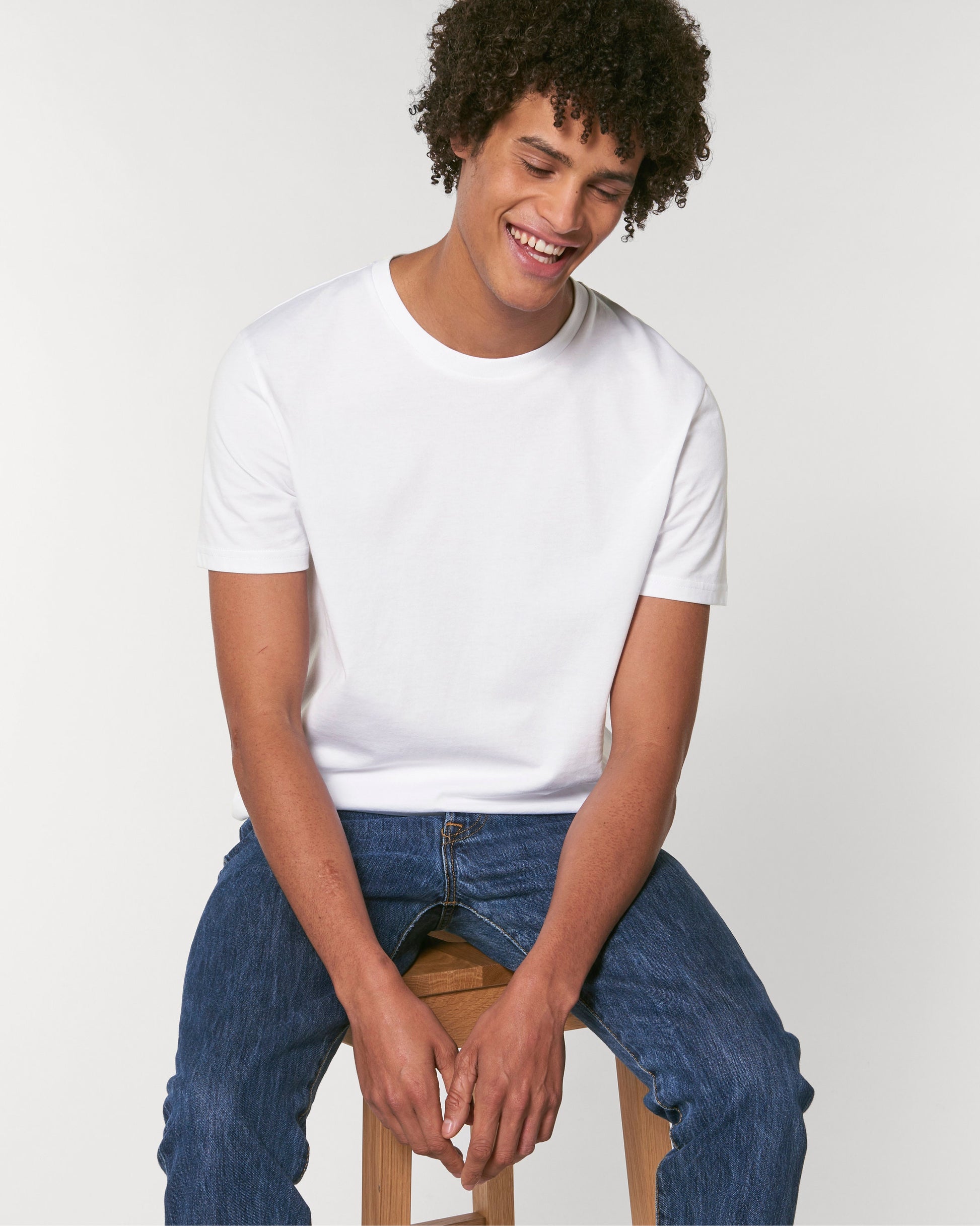 Hochwertiges 180 g/m²-T-Shirt mit Rundhalsausschnitt und charakteristischem „weichem Griff“, hergestellt aus 100 % Bio-Baumwolle.