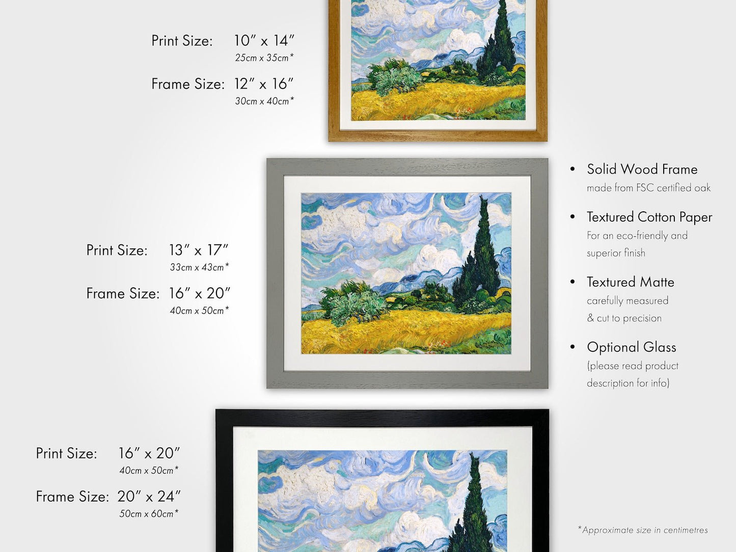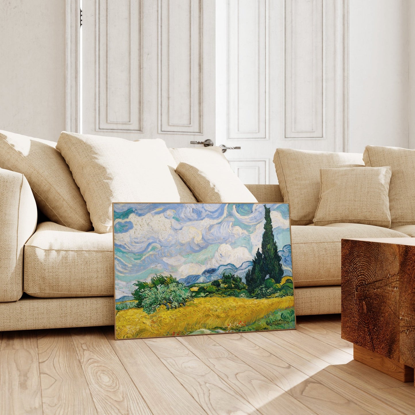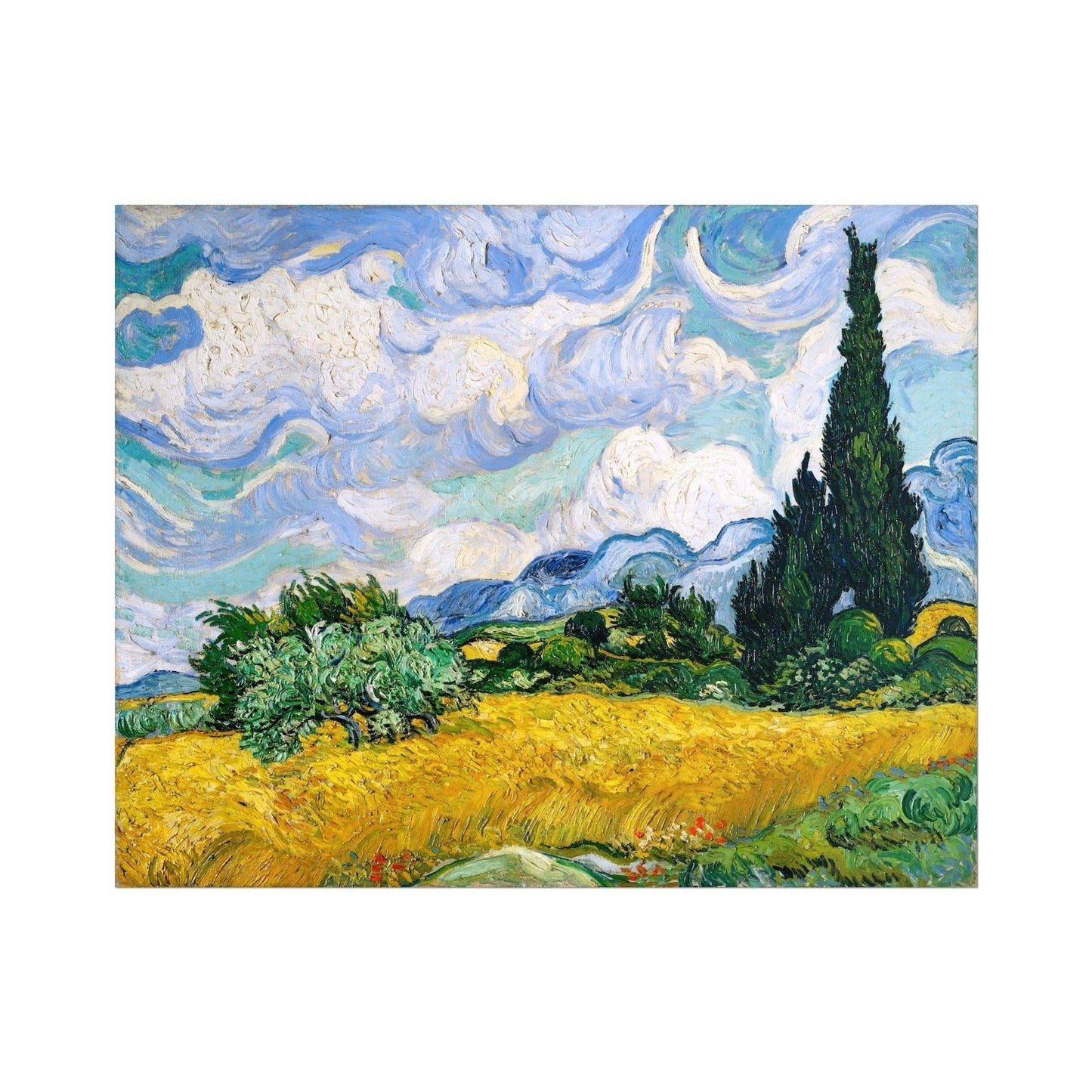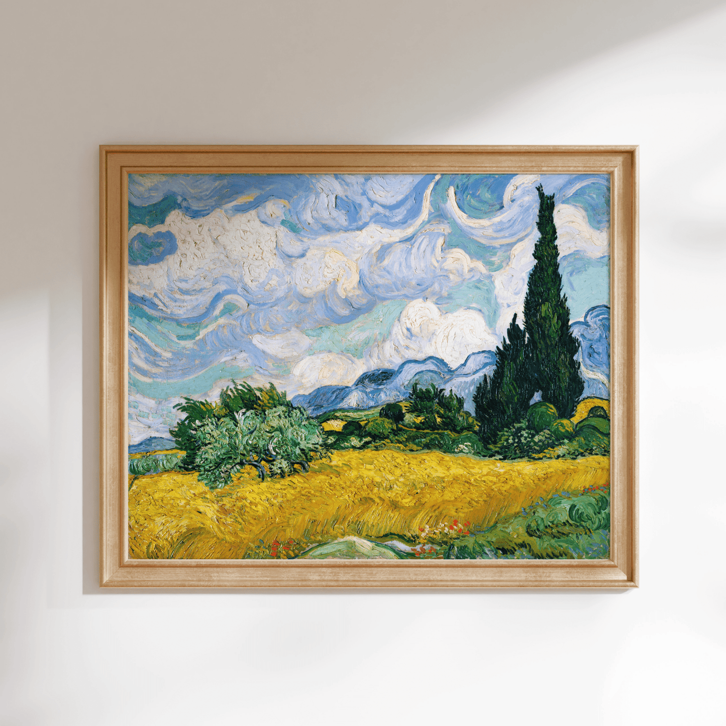 Vincent Van Goghs klassisches Öl-auf-Leinwand-Gemälde mit dem Titel „Weizenfeld mit Zypressen“, das als Premium-Giclée-Kunstdruck mit einer breiten Palette an Rahmenoptionen bestellt werden kann.