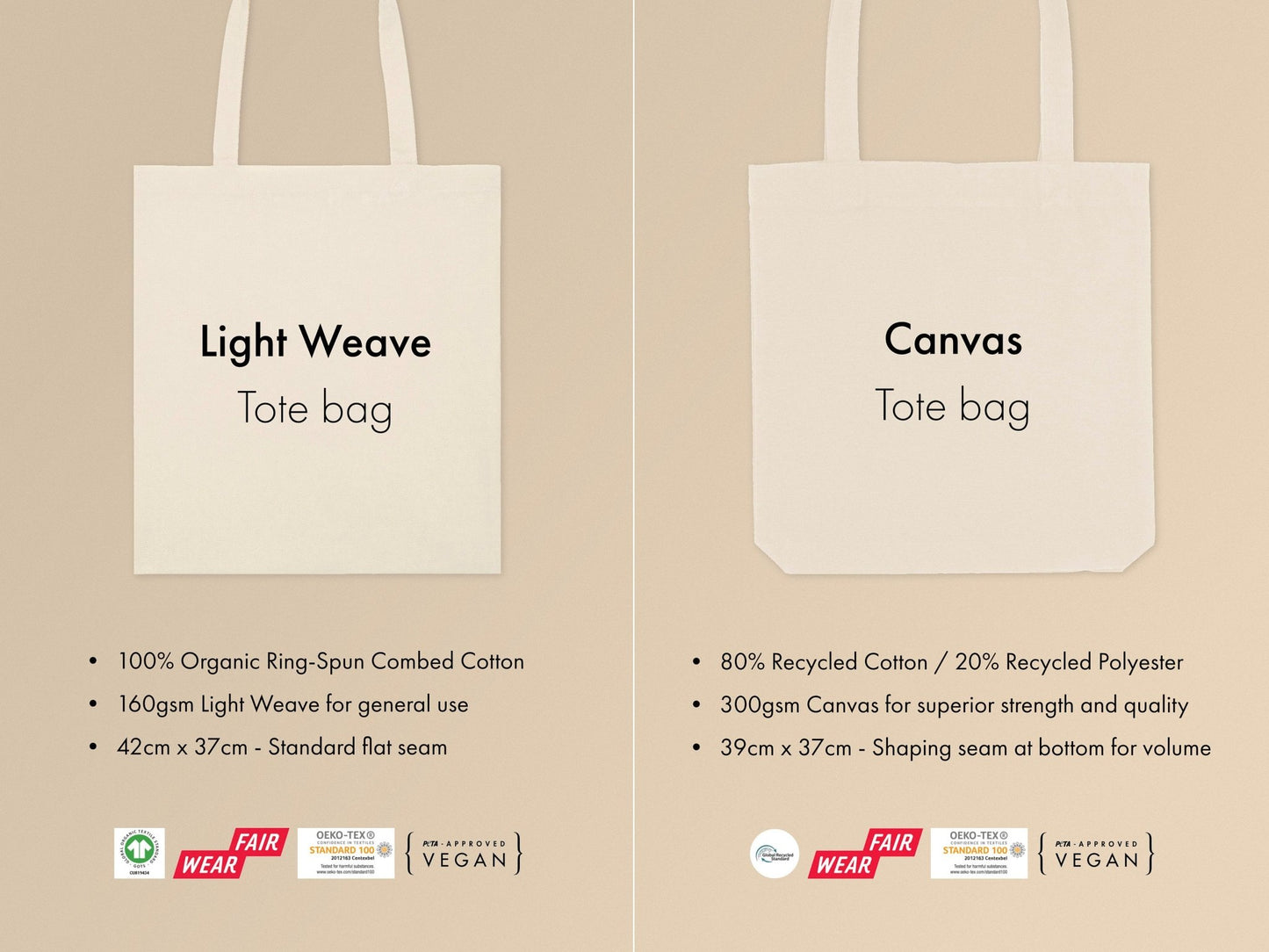 Les tote bags Light Weave sont fabriqués à partir de coton peigné filé à l'anneau 100 % biologique certifié GOTS*.