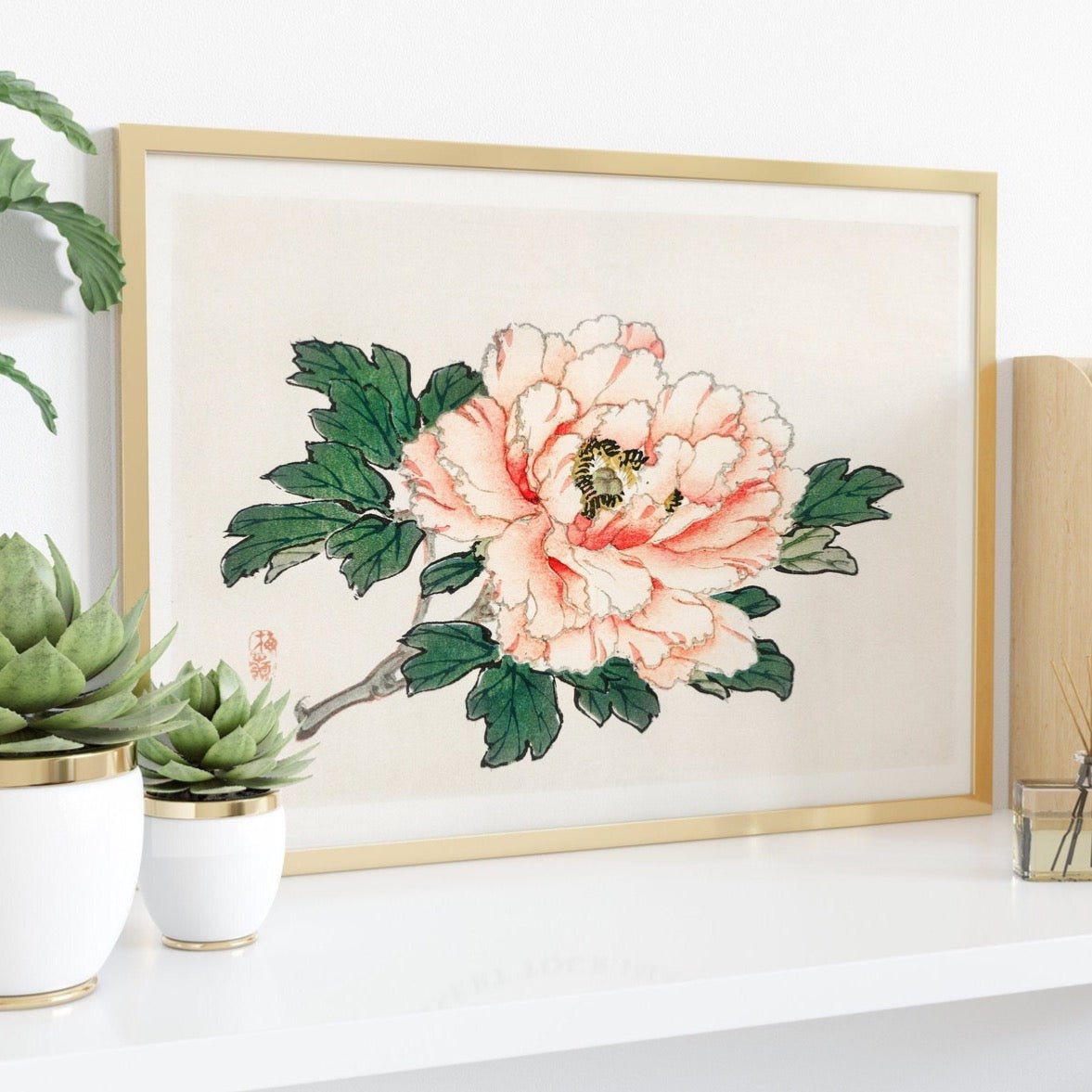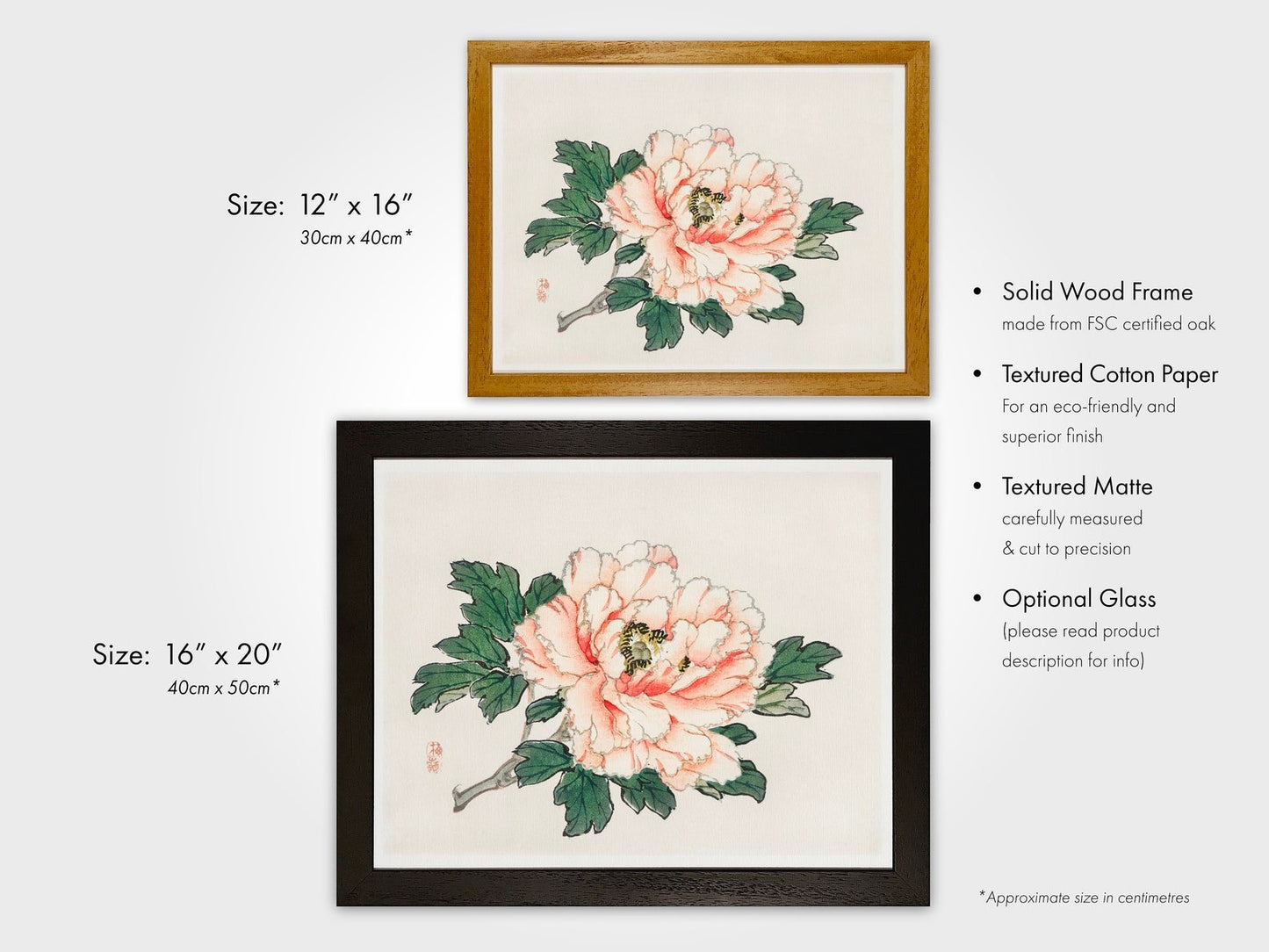 L'art japonais classique de la gravure sur bois de Barei Gakan 'Pink Rose', disponible sur commande en tant qu'impression d'art giclée premium avec une large gamme d'options de cadrage.