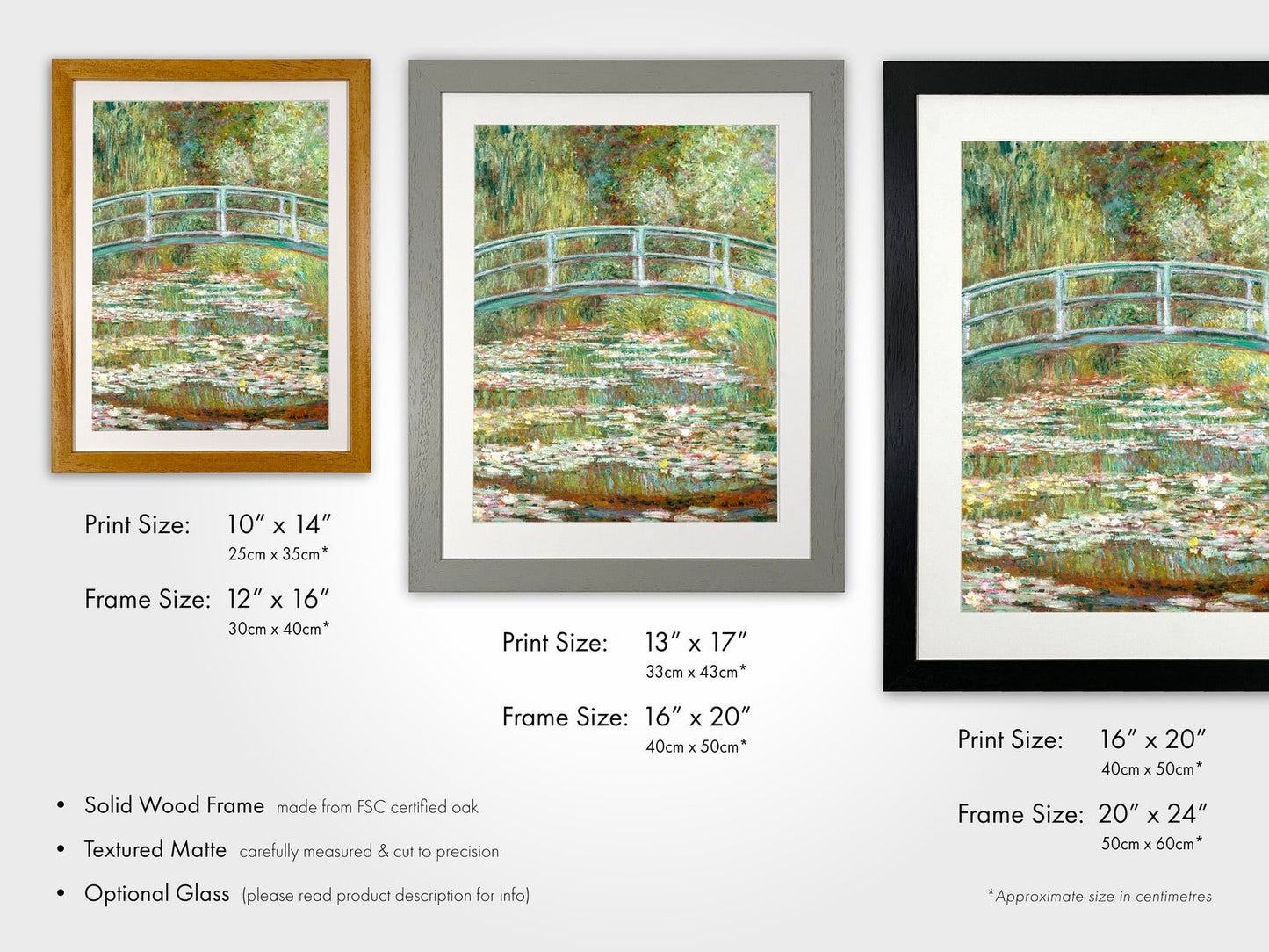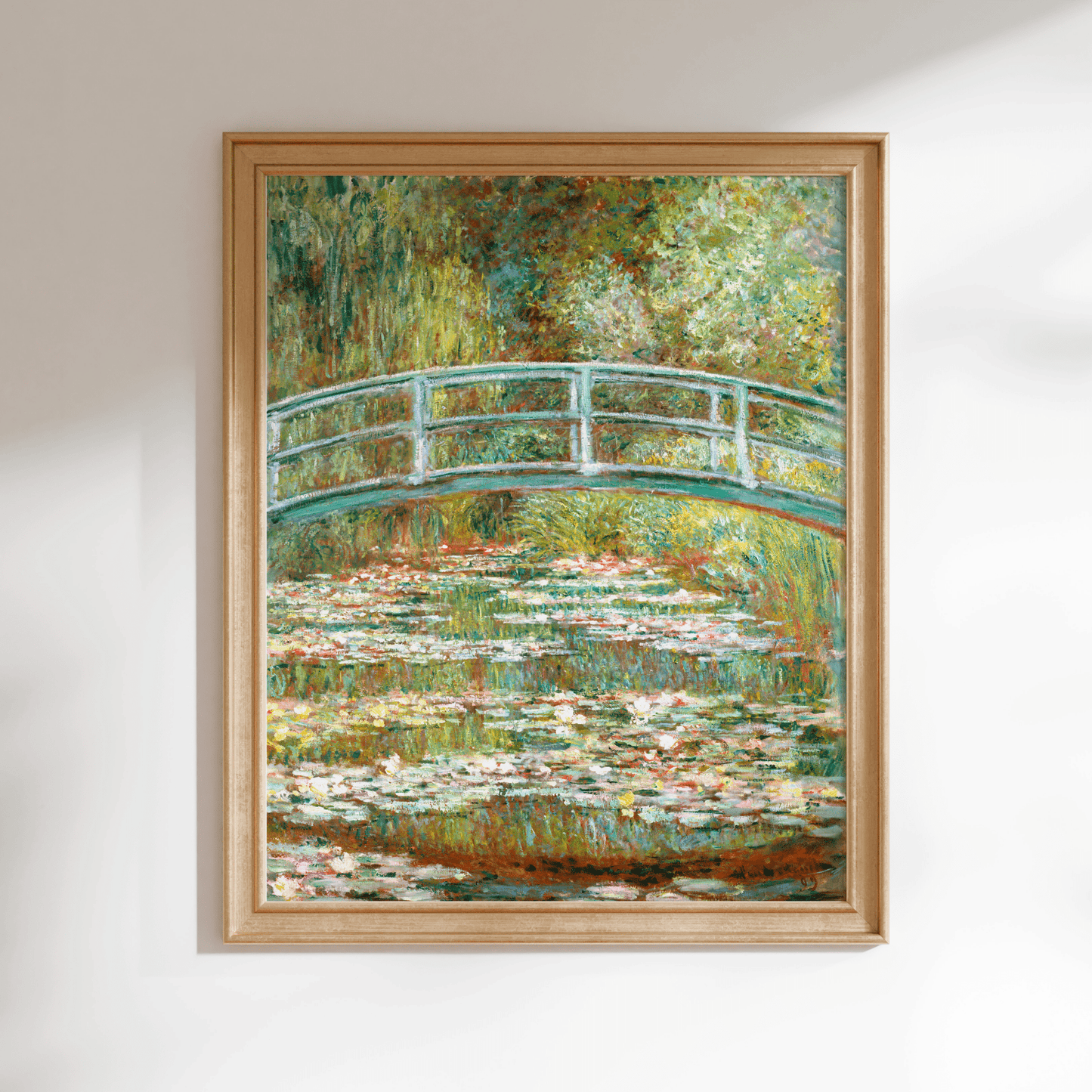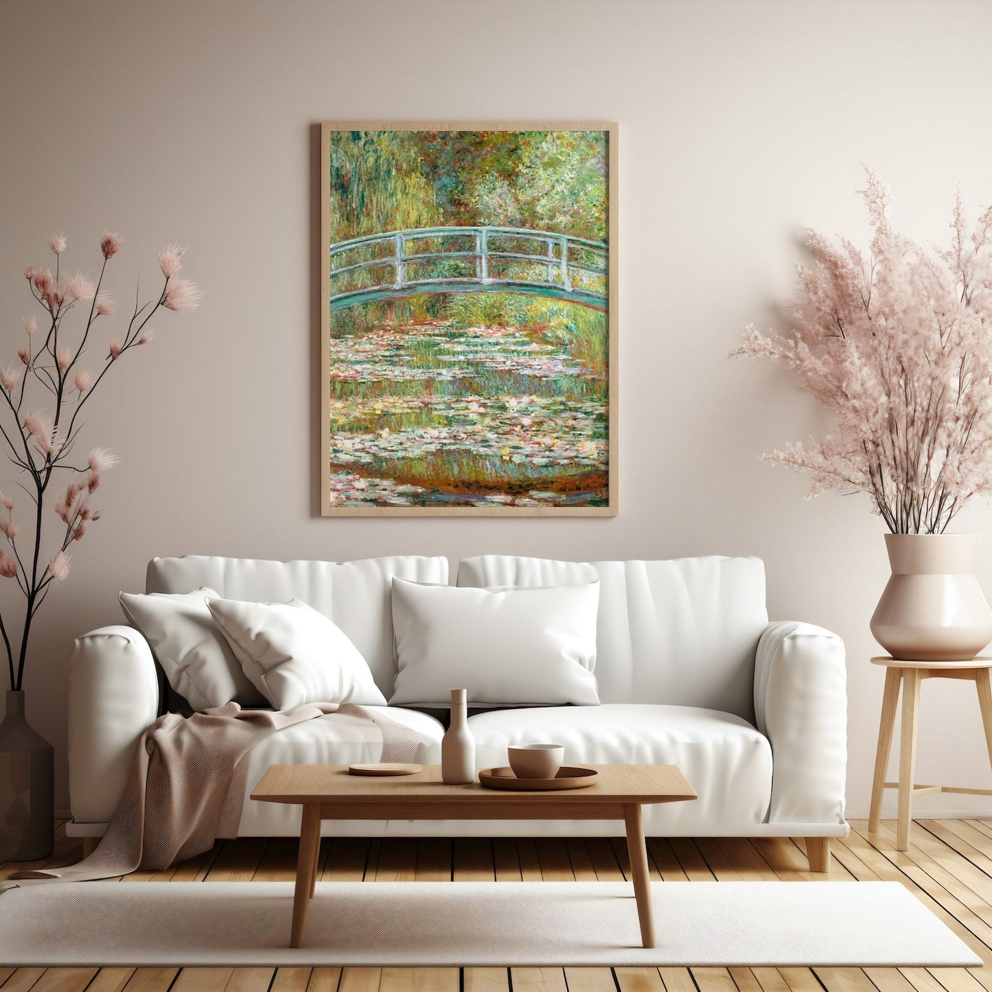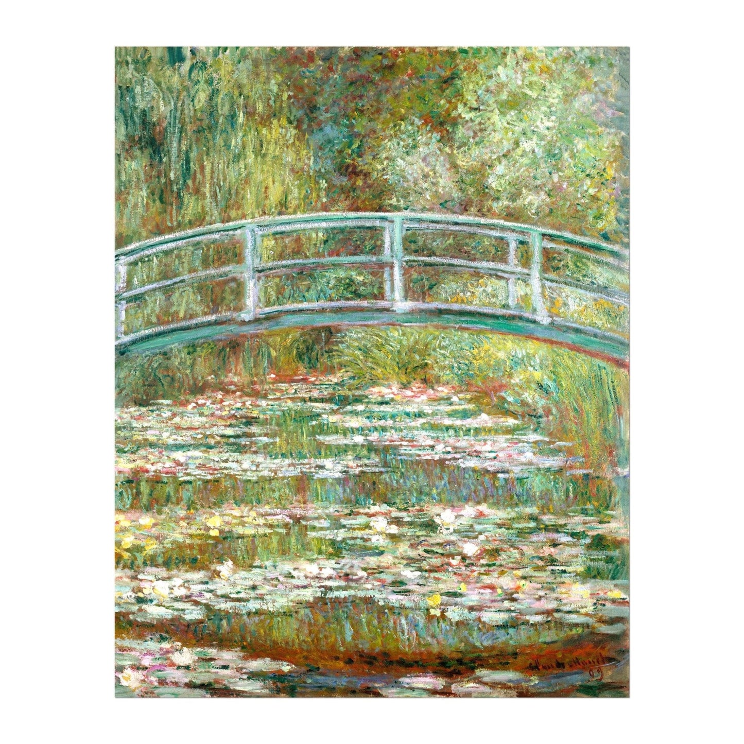 La peinture classique à l'huile sur toile de Claude Monet "Pont au-dessus d'un étang de nénuphars", disponible sur commande en tant qu'impression d'art giclée haut de gamme avec une large gamme d'options de cadrage.
