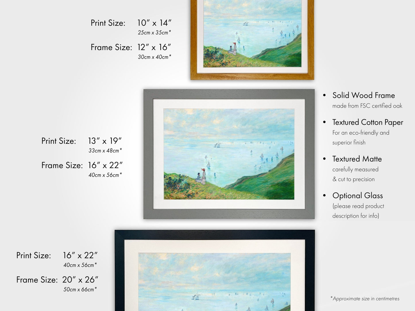 Tous nos produits encadrés incluent notre papier d'art en coton texturé en raison de ses propriétés d'archivage et de sa résistance aux éraflures et aux empreintes digitales. Cela signifie que l'œuvre peut être présentée "exposée" et sans glaçure pour un aspect optimal.