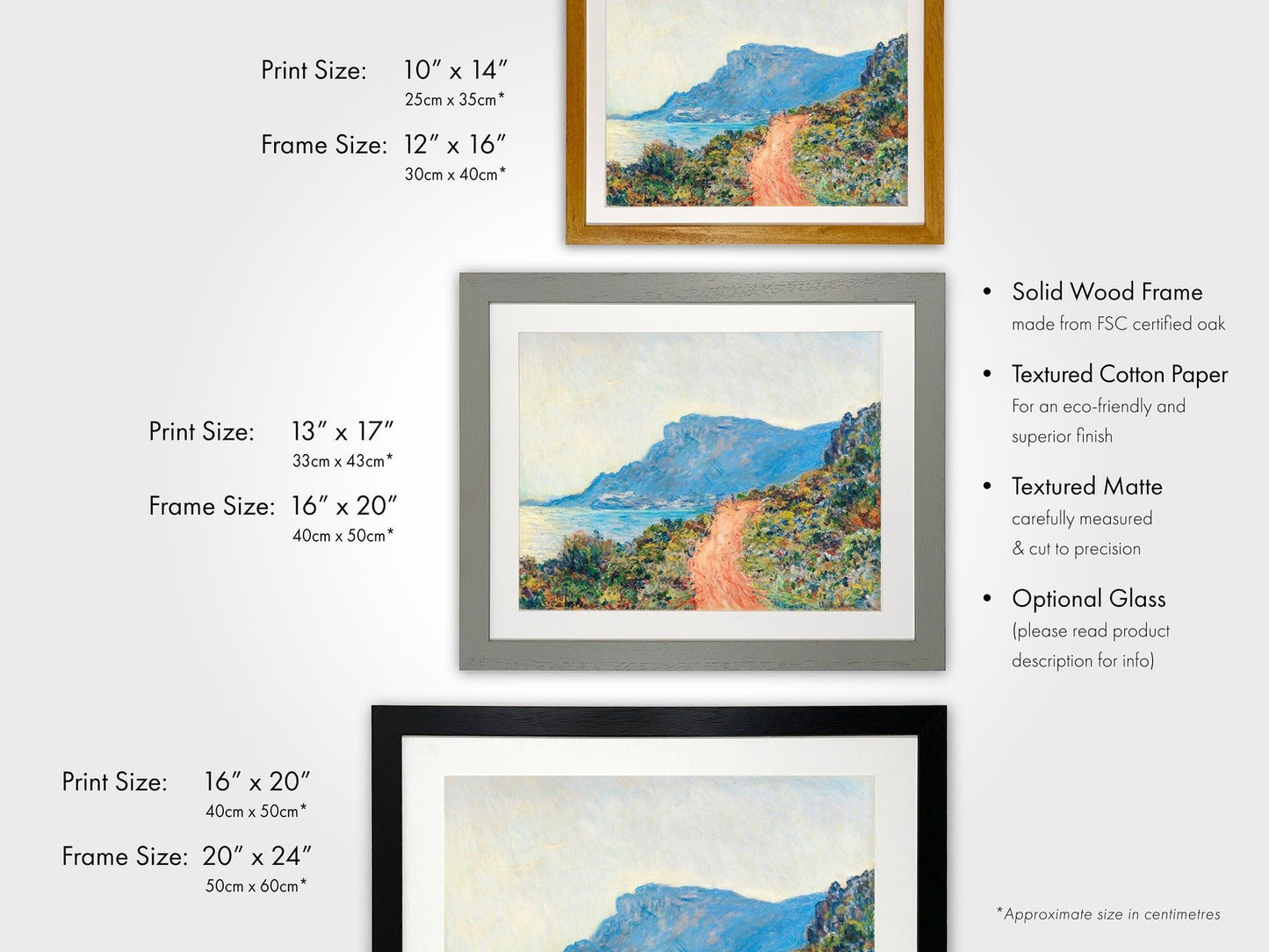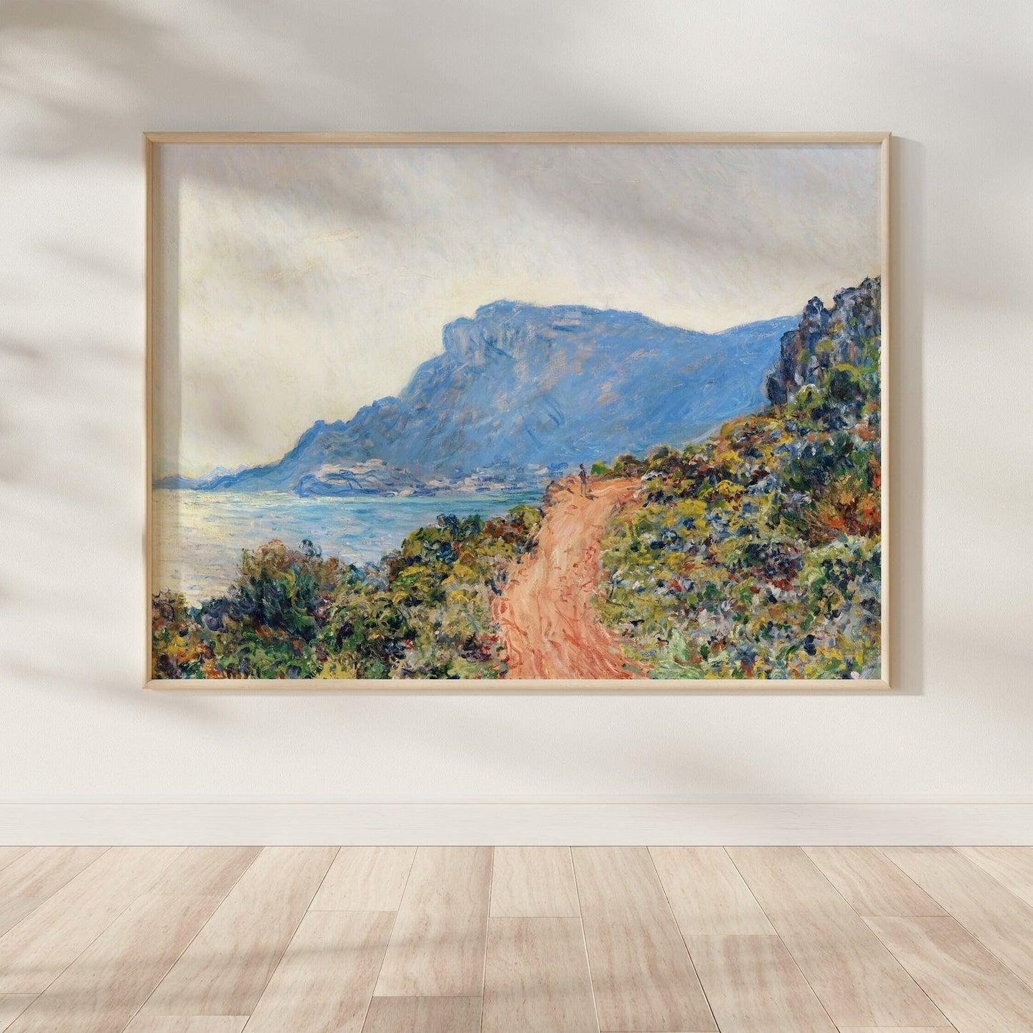 La peinture à l'huile sur toile classique de Claude Monet "La Corniche près de Monaco", disponible sur commande en tant qu'impression d'art giclée premium avec une large gamme d'options de cadrage.