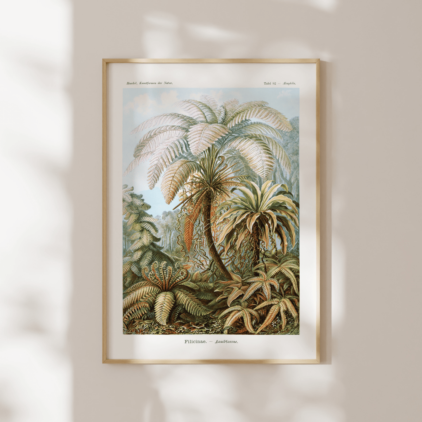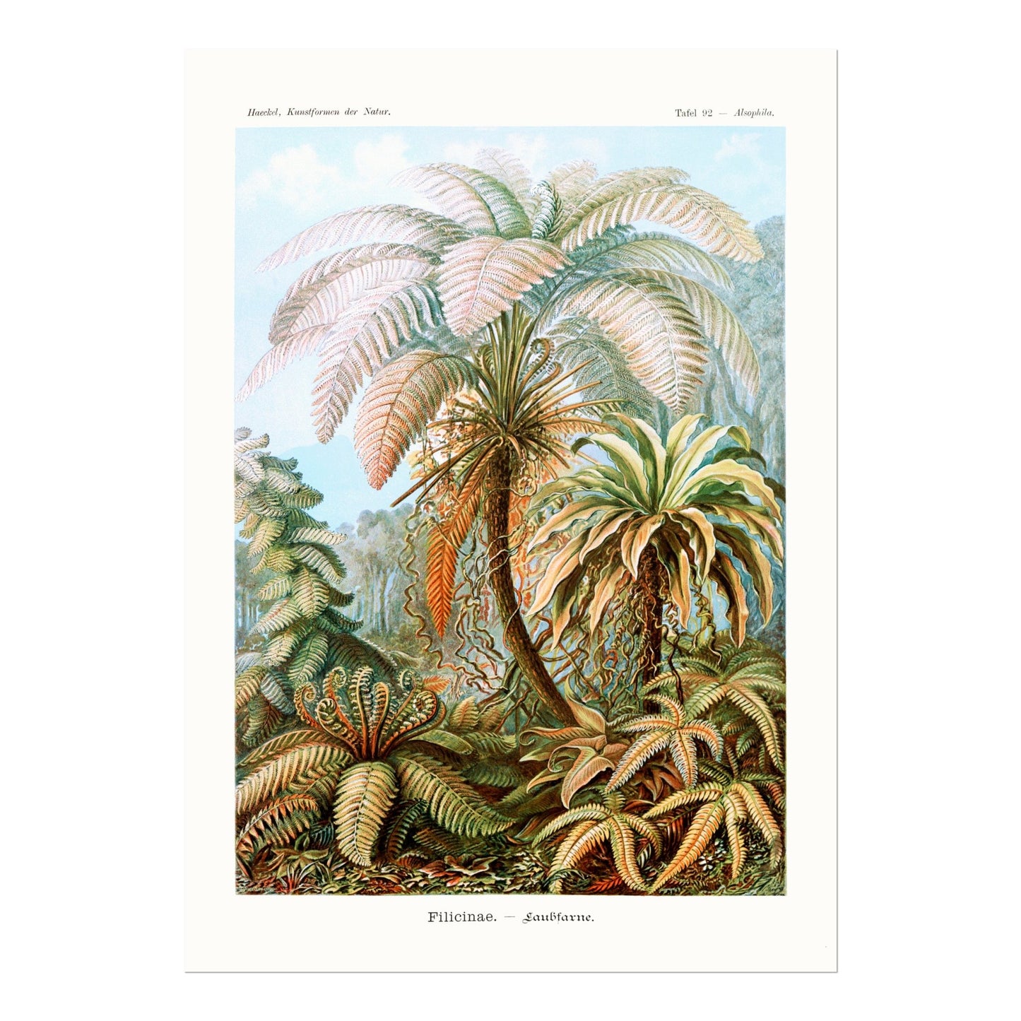 Une lithographie du début du XXe siècle d'une fougère Filicinae présentée dans "Kunstformen Der Natur" par le célèbre naturaliste et zoologiste allemand Ernst Haeckel, disponible en impression haute résolution dans une variété de tailles sur mesure.