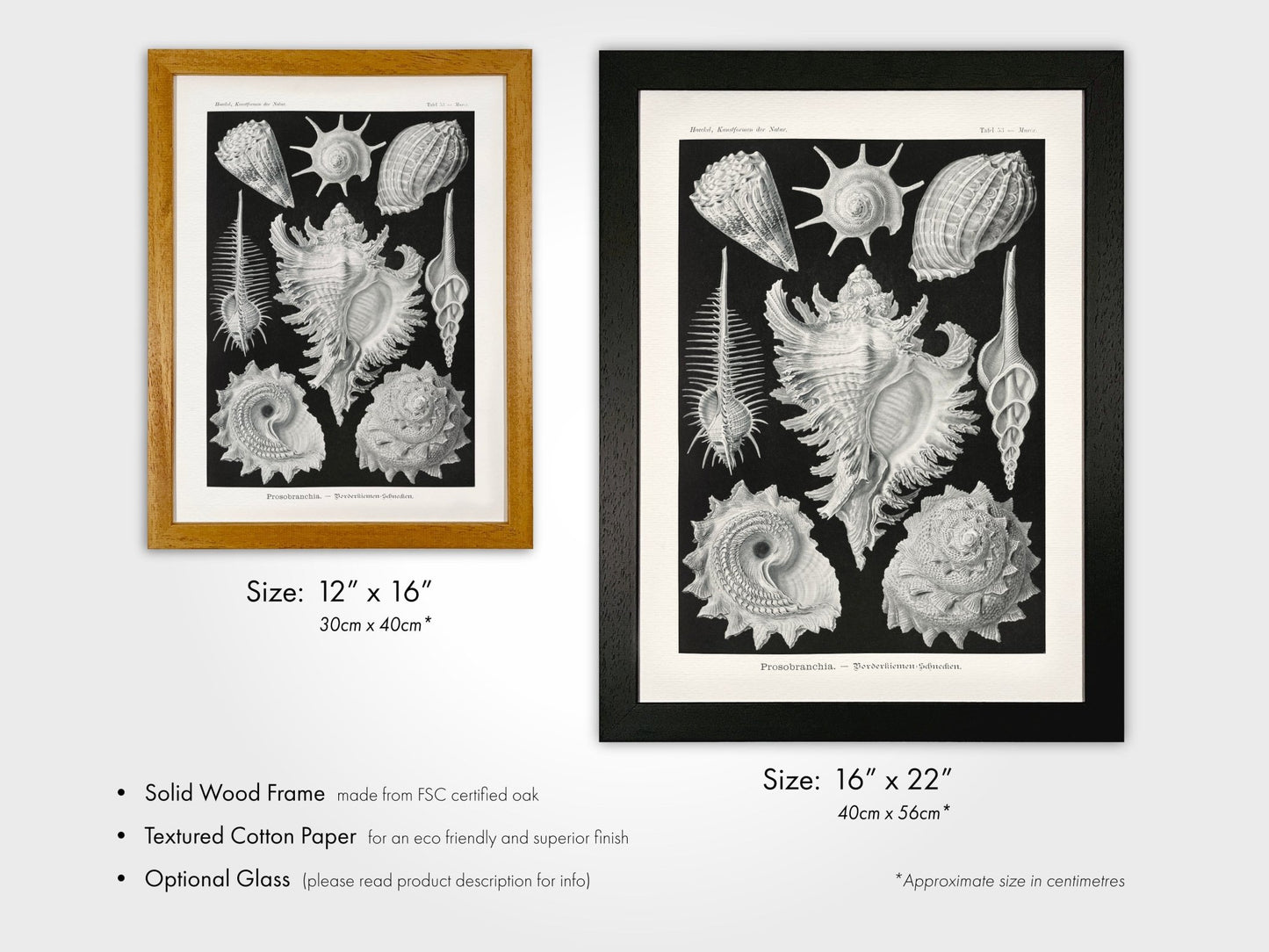 Tous les produits imprimés sont fabriqués exclusivement avec des encres végétaliennes et nous utilisons uniquement du chêne certifié FSC pour nos cadres en bois.