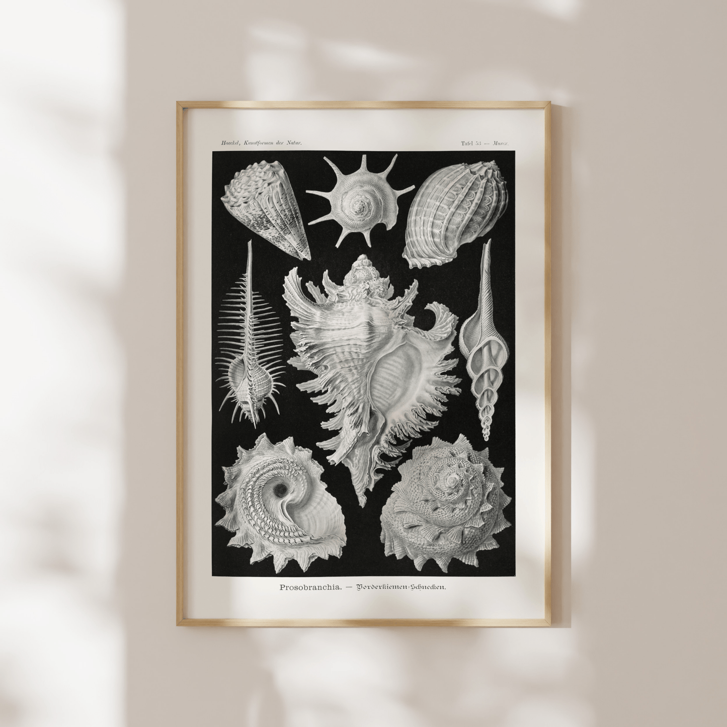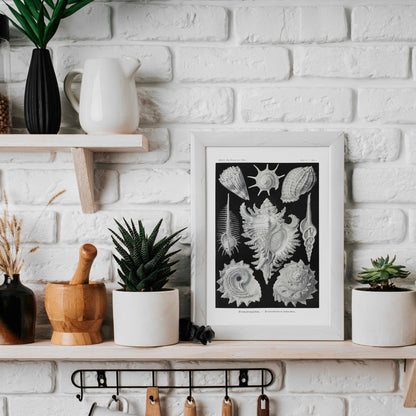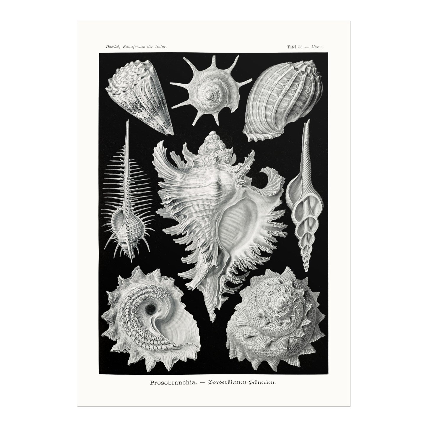 Une lithographie du début du XXe siècle de Prosobranchia présentée dans "Kunstformen Der Natur" par le célèbre naturaliste et zoologiste allemand Ernst Haeckel, disponible en impression haute résolution dans une variété de tailles sur mesure.