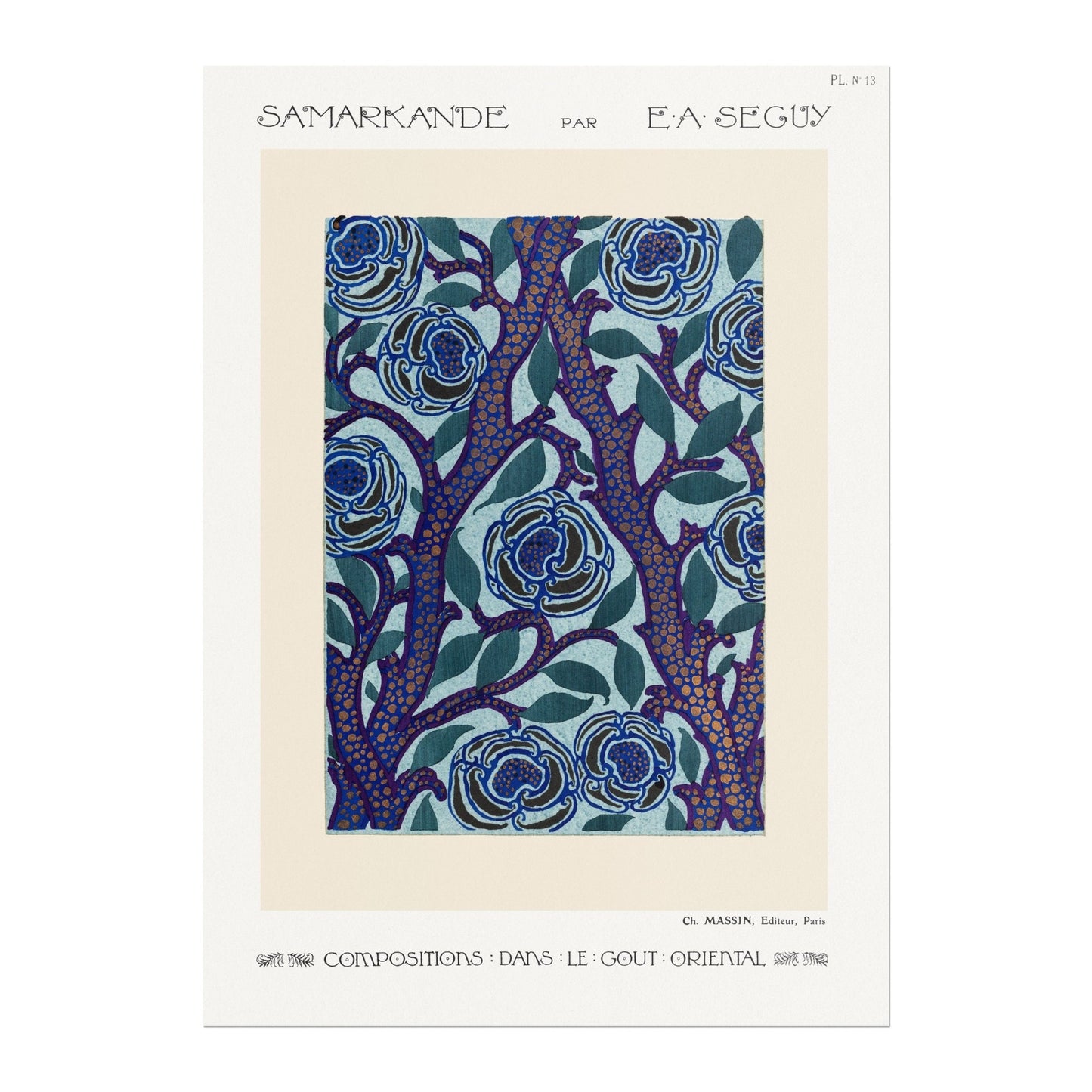Une lithographie à motif Art Nouveau d'une collection appelée "Samarkande" de l'artiste français Eugène Séguy, disponible sur commande en tant qu'impression d'art giclée haut de gamme avec une large gamme d'options de cadrage.