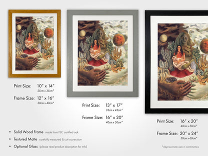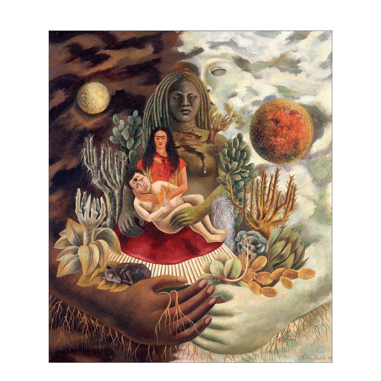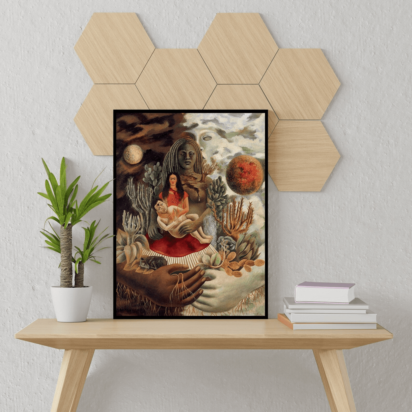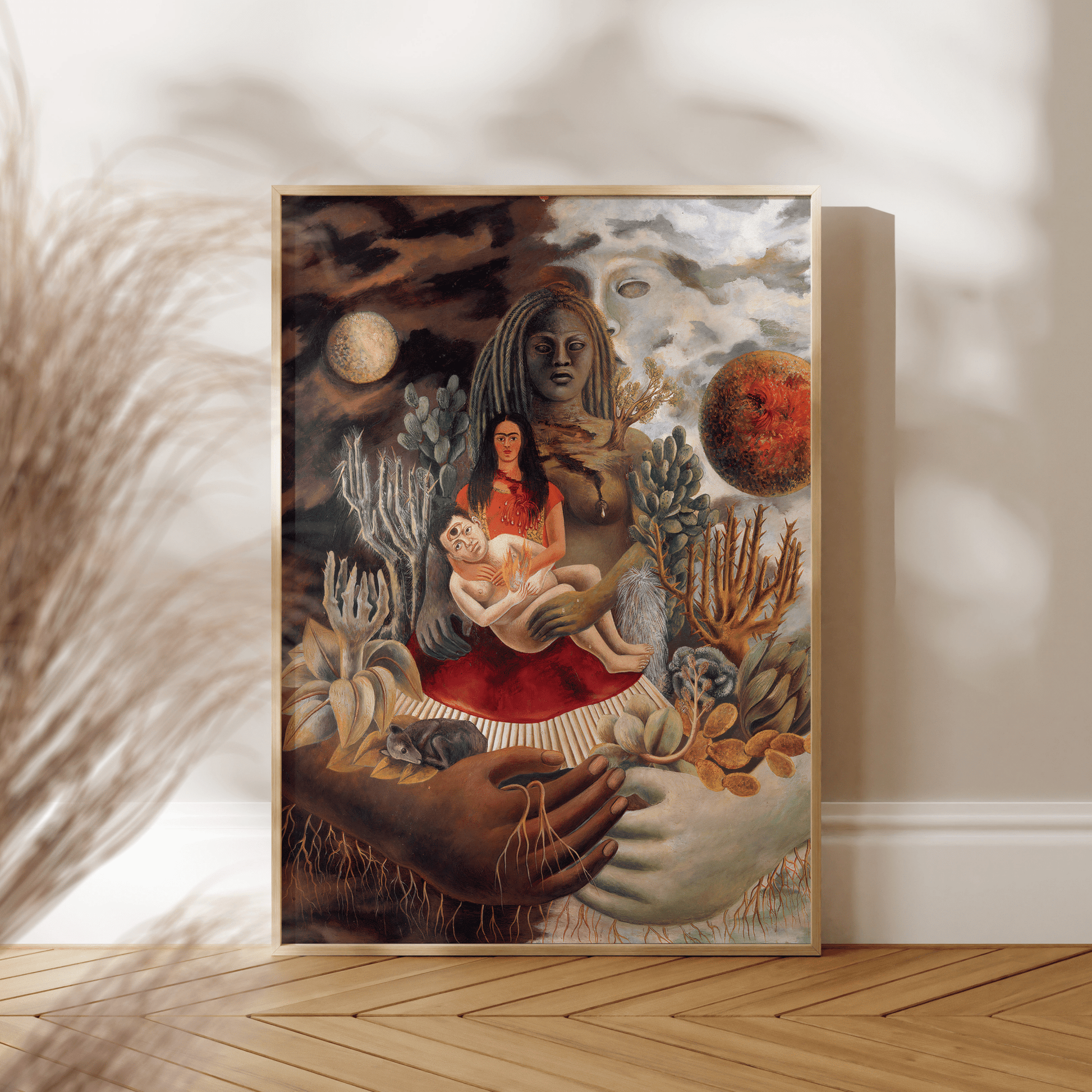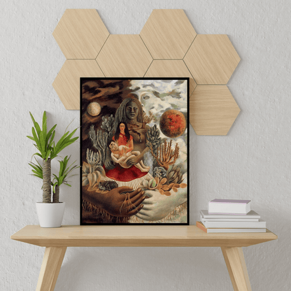 La peinture classique à l'huile sur toile de Frida Kahlo intitulée "The Love Embrace", disponible sur commande en tant qu'impression d'art giclée premium avec une large gamme d'options de cadrage.