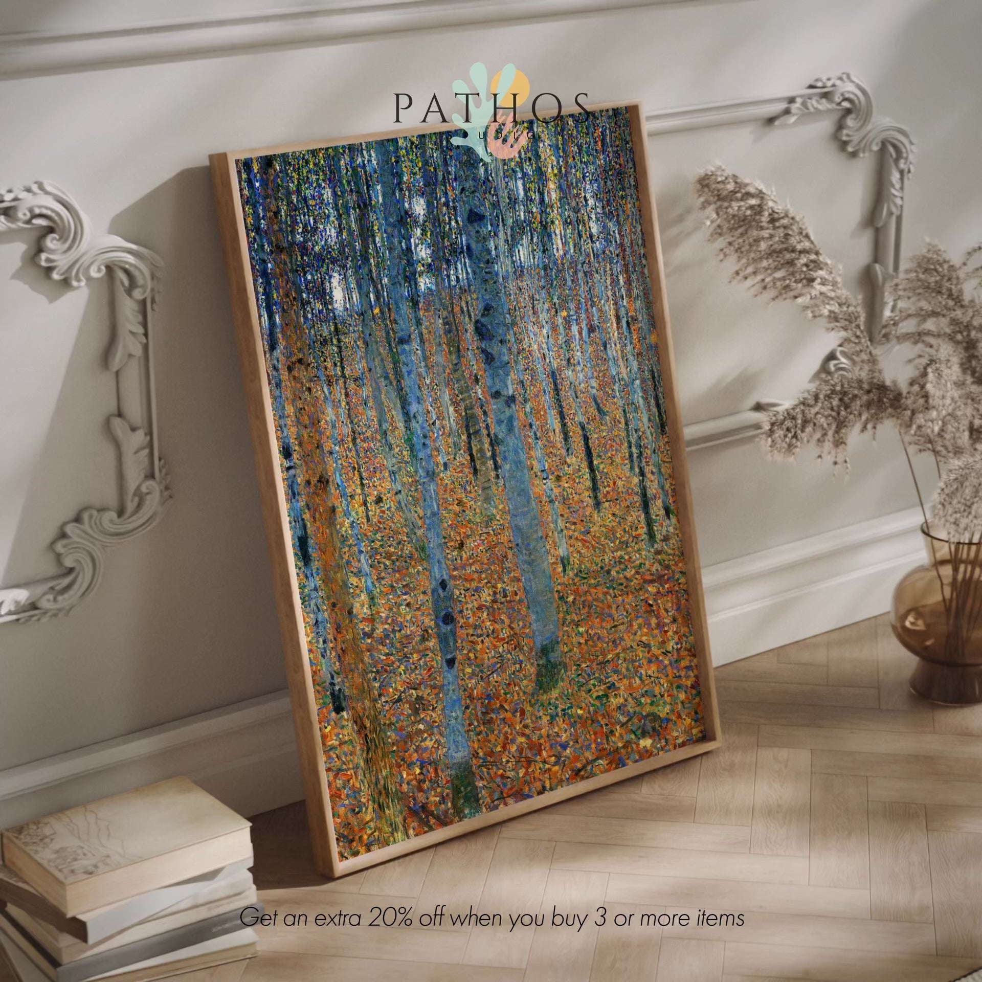 Les peintures à l'huile sur toile classiques de Gustav Klimt intitulées "Beech Grove I", disponibles sur commande en tant qu'impression d'art giclée premium avec une large gamme d'options de cadrage.