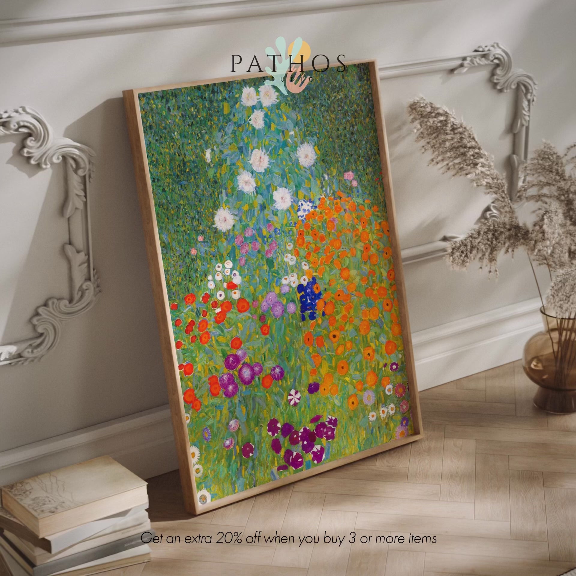 Les peintures à l'huile sur toile classiques de Gustav Klimt intitulées "Flower Garden", disponibles sur commande en tant qu'impression d'art giclée premium avec une large gamme d'options de cadrage.