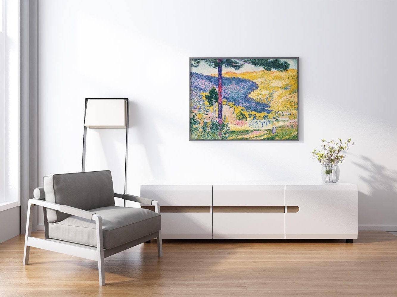 Une peinture pointilliste classique d'Henri-Edmond Cross, disponible sous forme d'impression d'art giclée et avec une variété d'options d'encadrement.