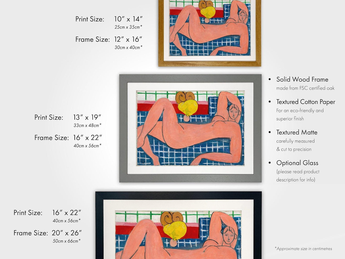Veuillez consulter les images associées pour notre gamme d'options de cadre et des informations détaillées sur les tailles.