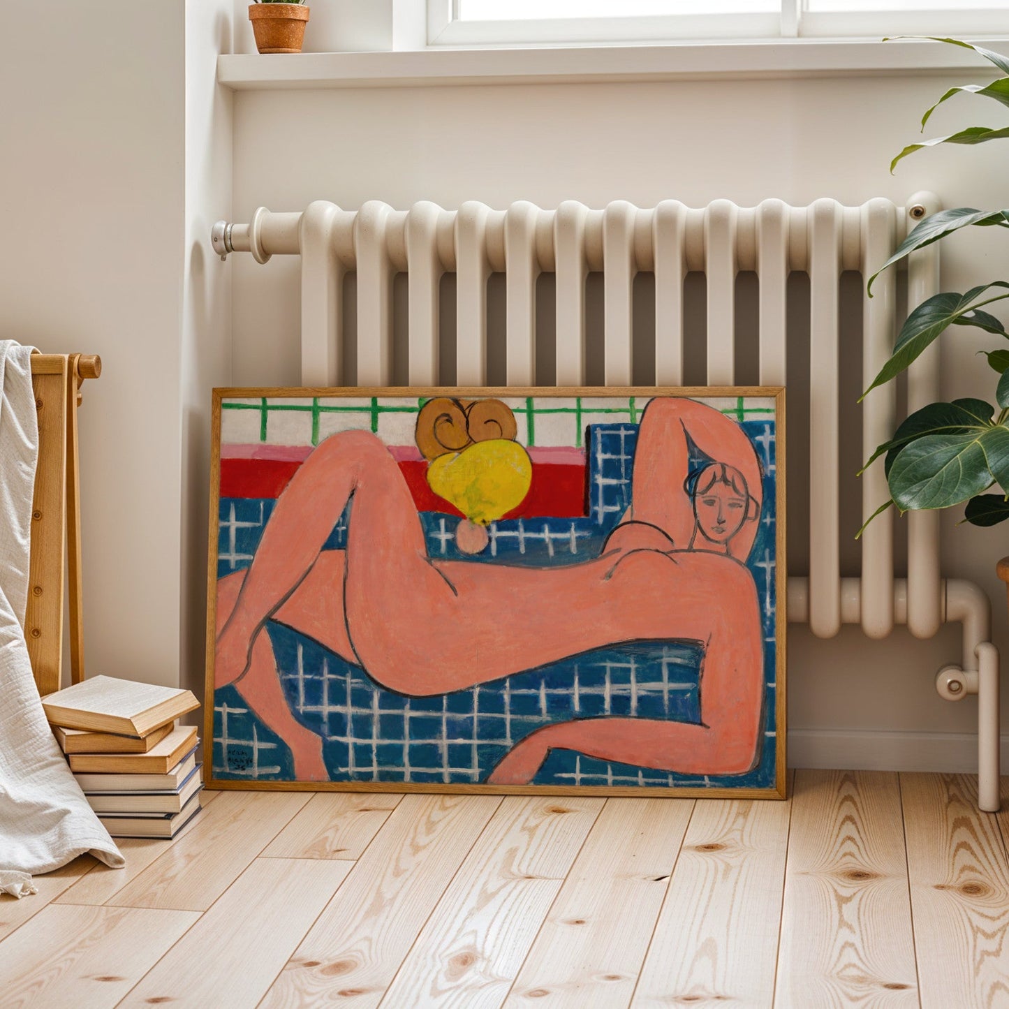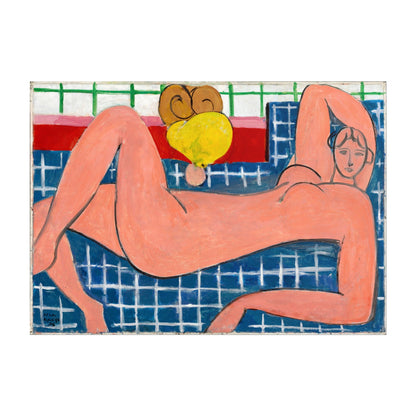 Une peinture à l'huile sur toile intitulée « The Pink Nude » ou « Large Reclining Nude » par l'artiste moderne français Henri Matisse, disponible sur commande en tant qu'impression d'art giclée premium avec une large gamme d'options de cadrage.