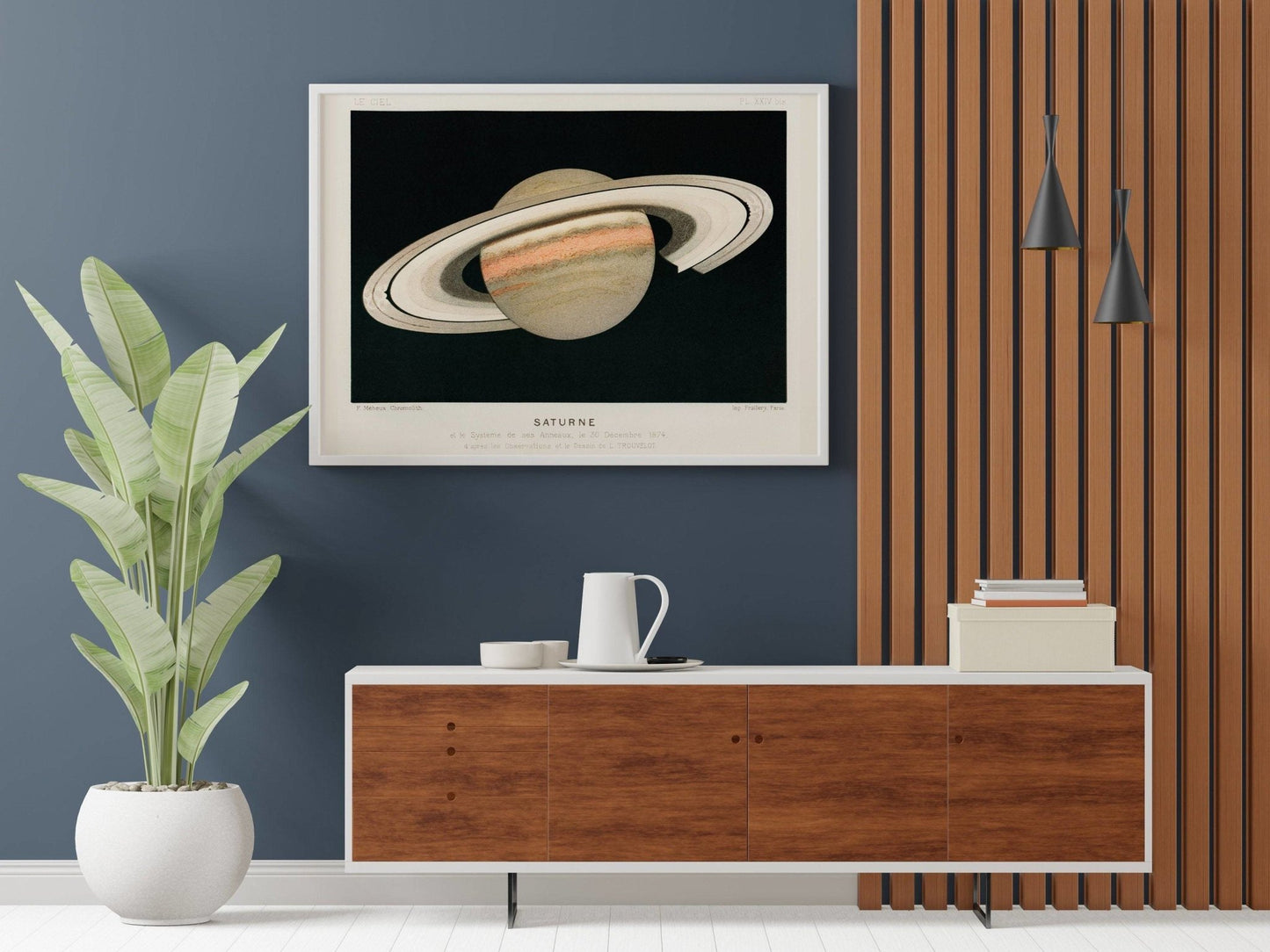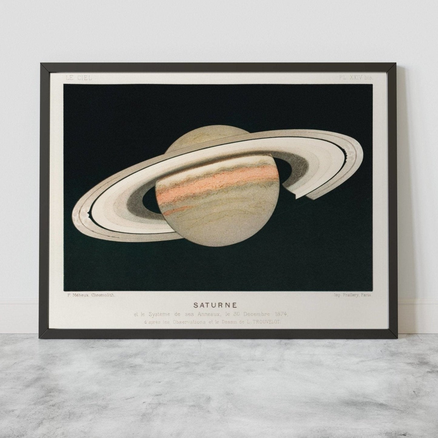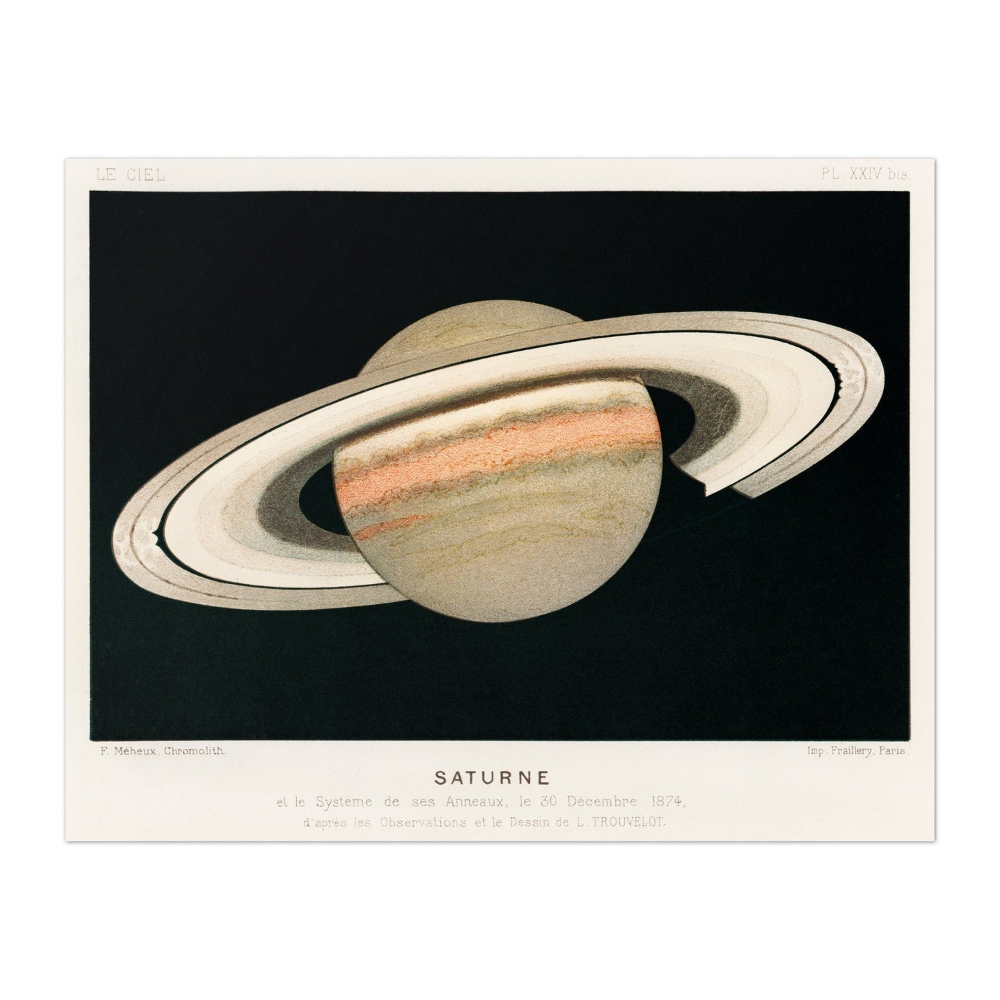 Une représentation antique de la planète Saturne, illustrée par F. Meheux et imprimée en 1877. Disponible en impression giclée haute résolution dans une variété de tailles sur mesure.