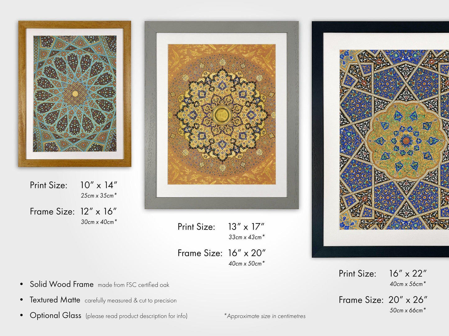 Si vous souhaitez que votre cadre inclue une feuille de verre, veuillez nous contacter pour un devis personnalisé. Nous vous recommandons d'acheter une feuille de verre si vous prévoyez d'accrocher votre impression encadrée dans une zone sensible à l'humidité, comme dans une salle de bain ou une cuisine.