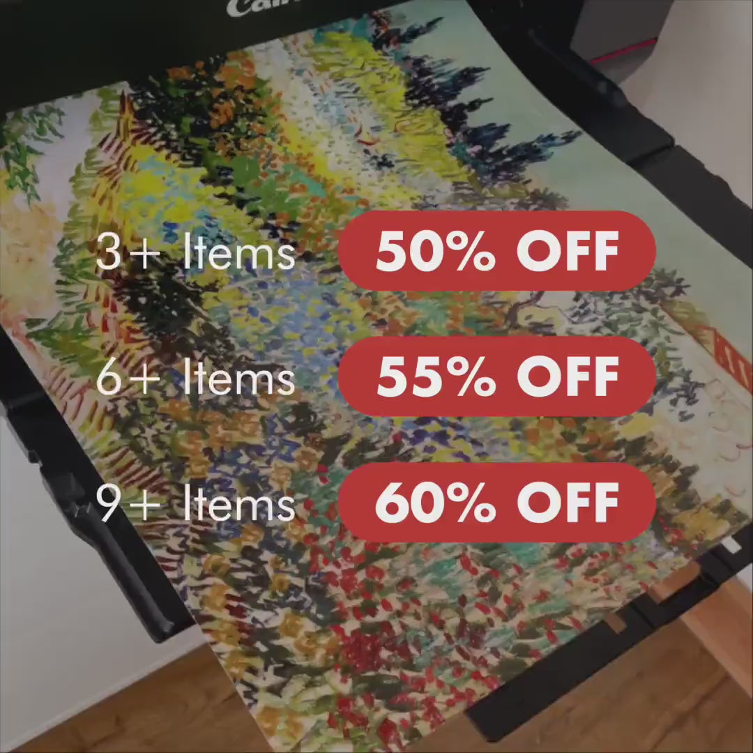 Imprimé sans bordure à l'aide d'un large éventail d'encres pigmentées végétaliennes et d'archives pour une résistance à la décoloration et une longévité d'impression.