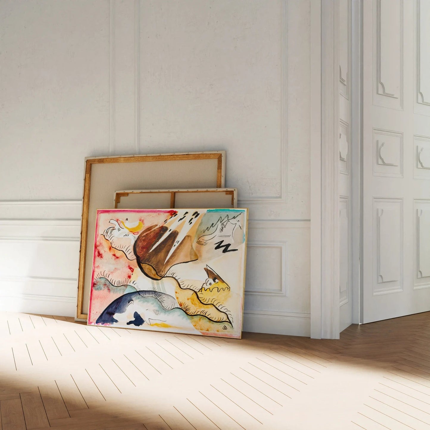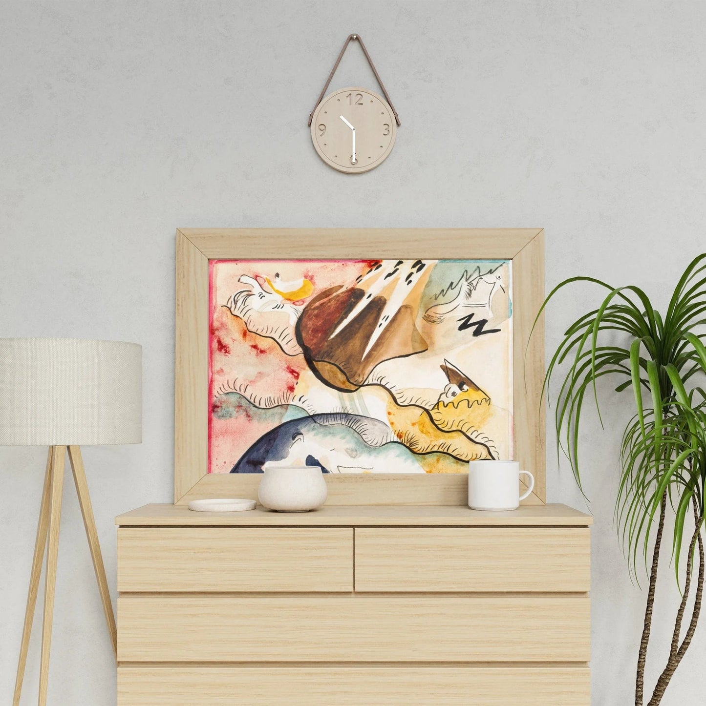 Une œuvre abstraite classique intitulée "Rain Landscape" de Wassily Kandinsky, disponible sur commande en tant qu'impression d'art giclée premium avec une large gamme d'options de cadrage.