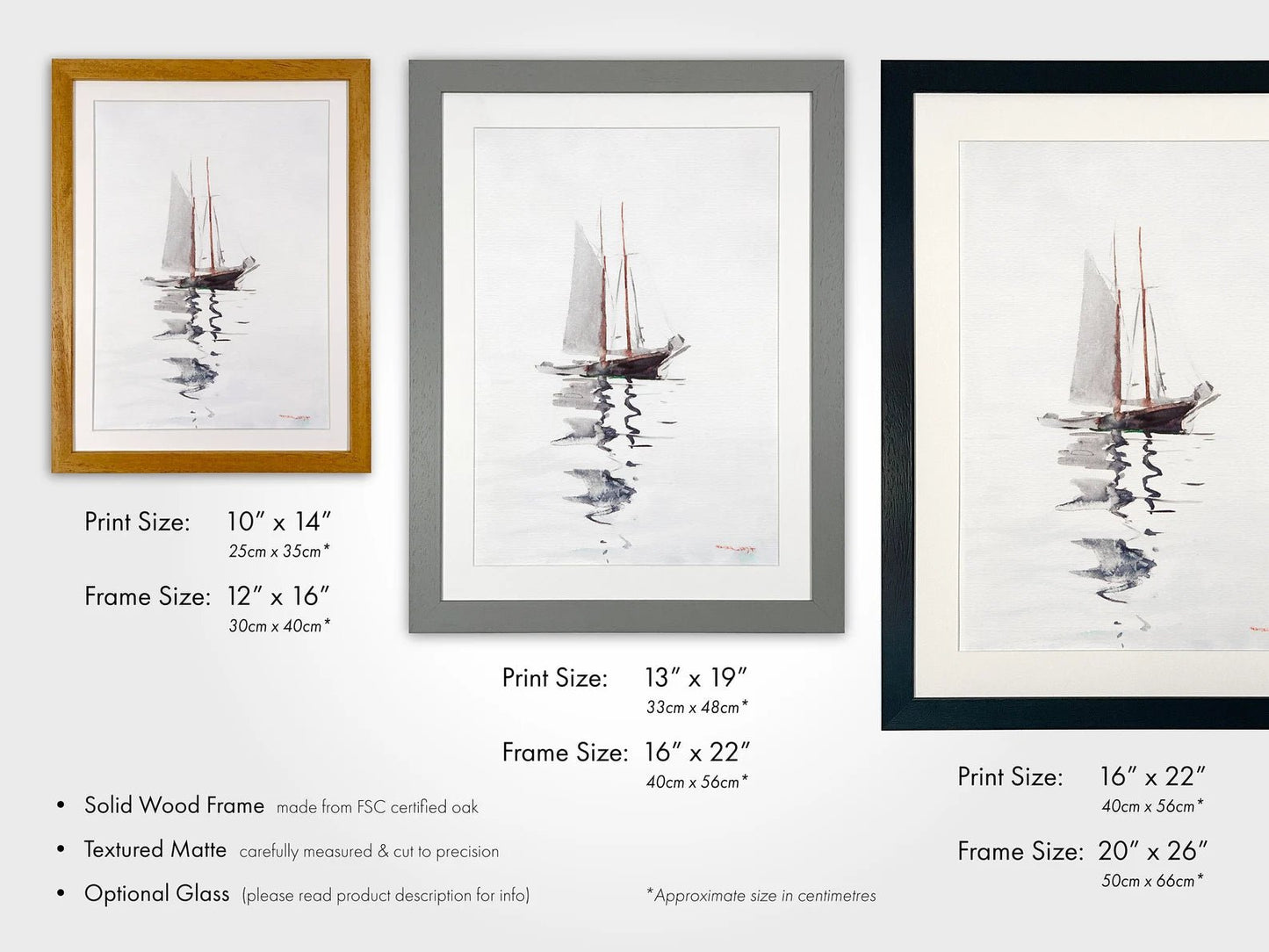 Les impressions peuvent également être commandées dans des cadres en bois sur mesure avec une bordure mate texturée et une fenêtre en verre authentique. Ils sont disponibles dans une large gamme de finitions dans les tailles suivantes :