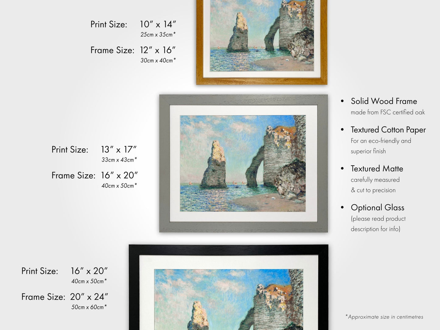 Please see related images for our range of frame options and detailed sizing information.
