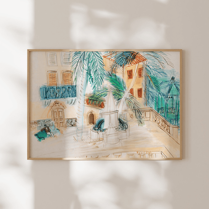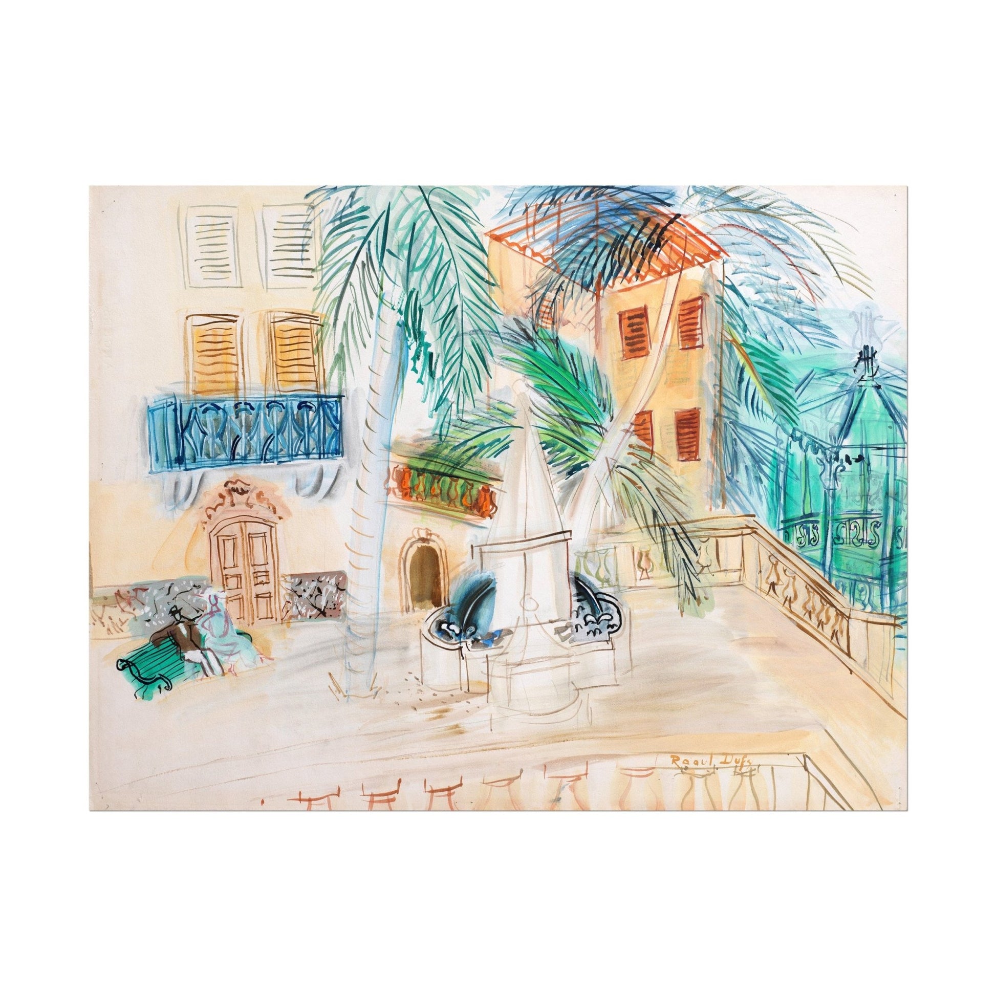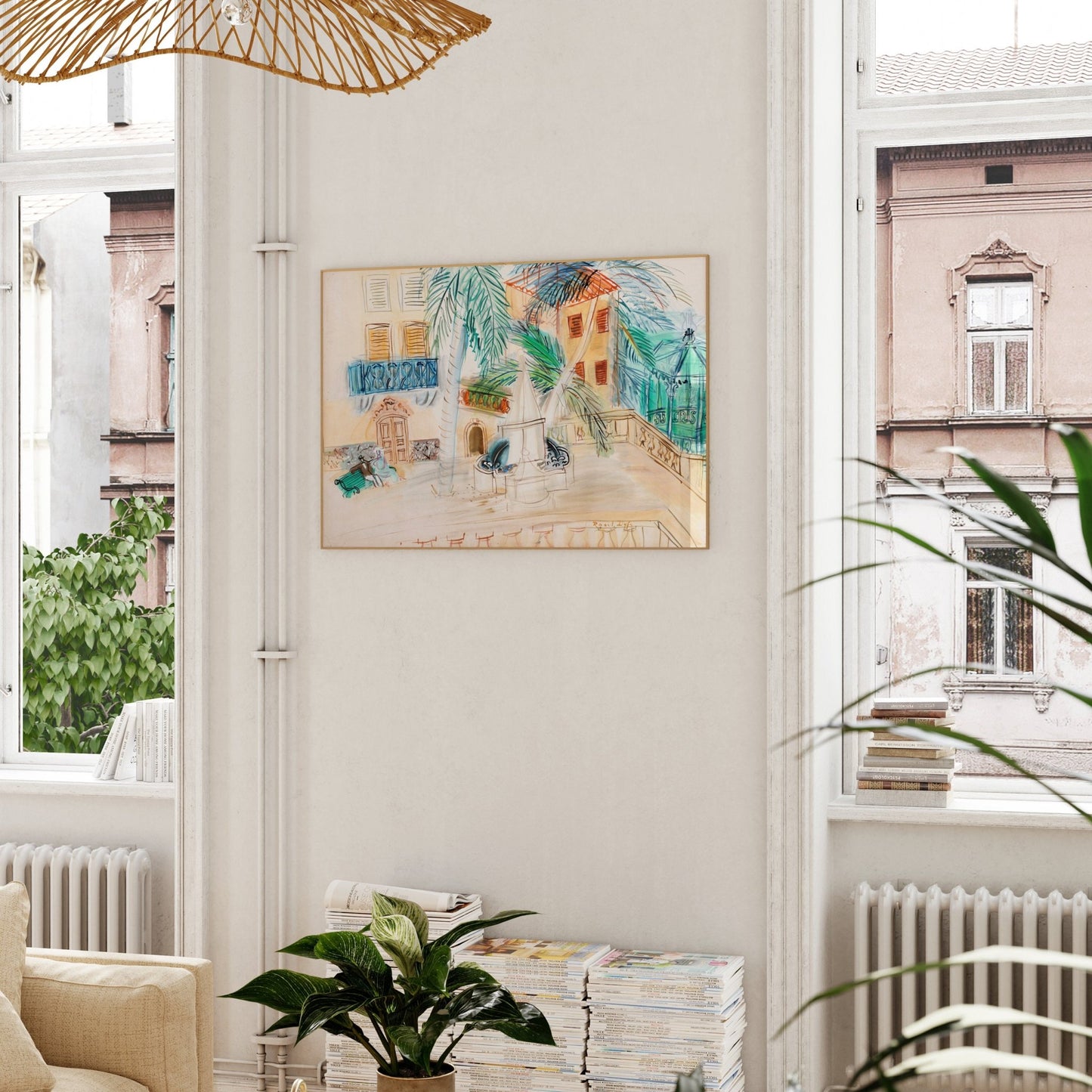 A classic painting by French Fauvist Artist Raoul Dufy titled 'Couple Sur Un Banc, Place d'Hyères', available as a giclée print with a selection of framing options.