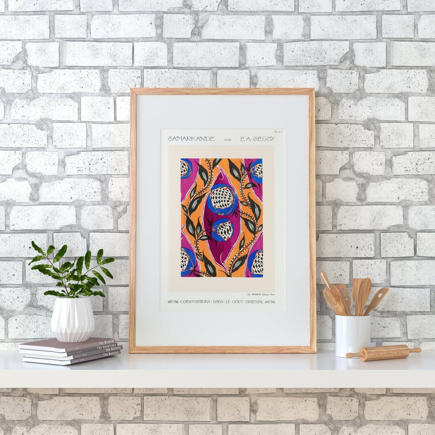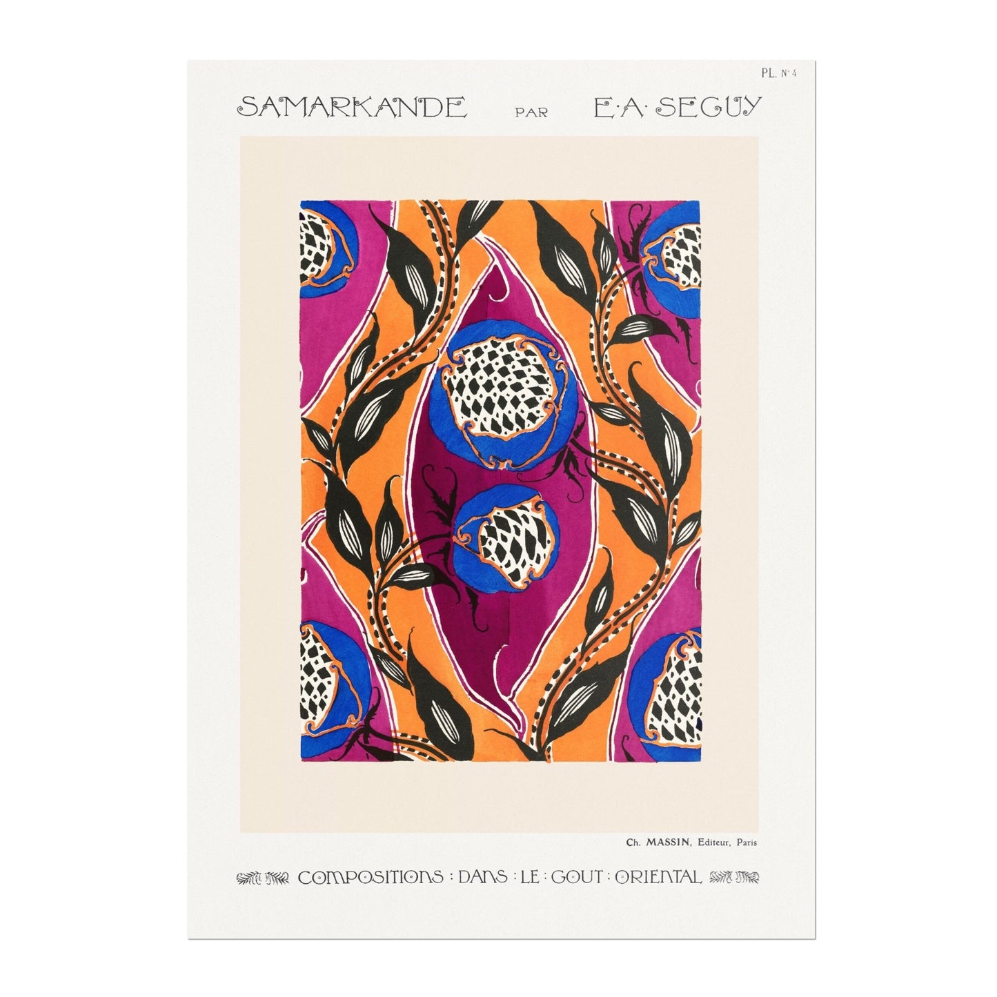 An Art Nouveau pattern lithograph from a collection called 'Samarkande' by French artist Eugène Séguy, available as a high resolution print in a variety of bespoke sizes, available to order as a premium giclée art print with a wide range of framing options.