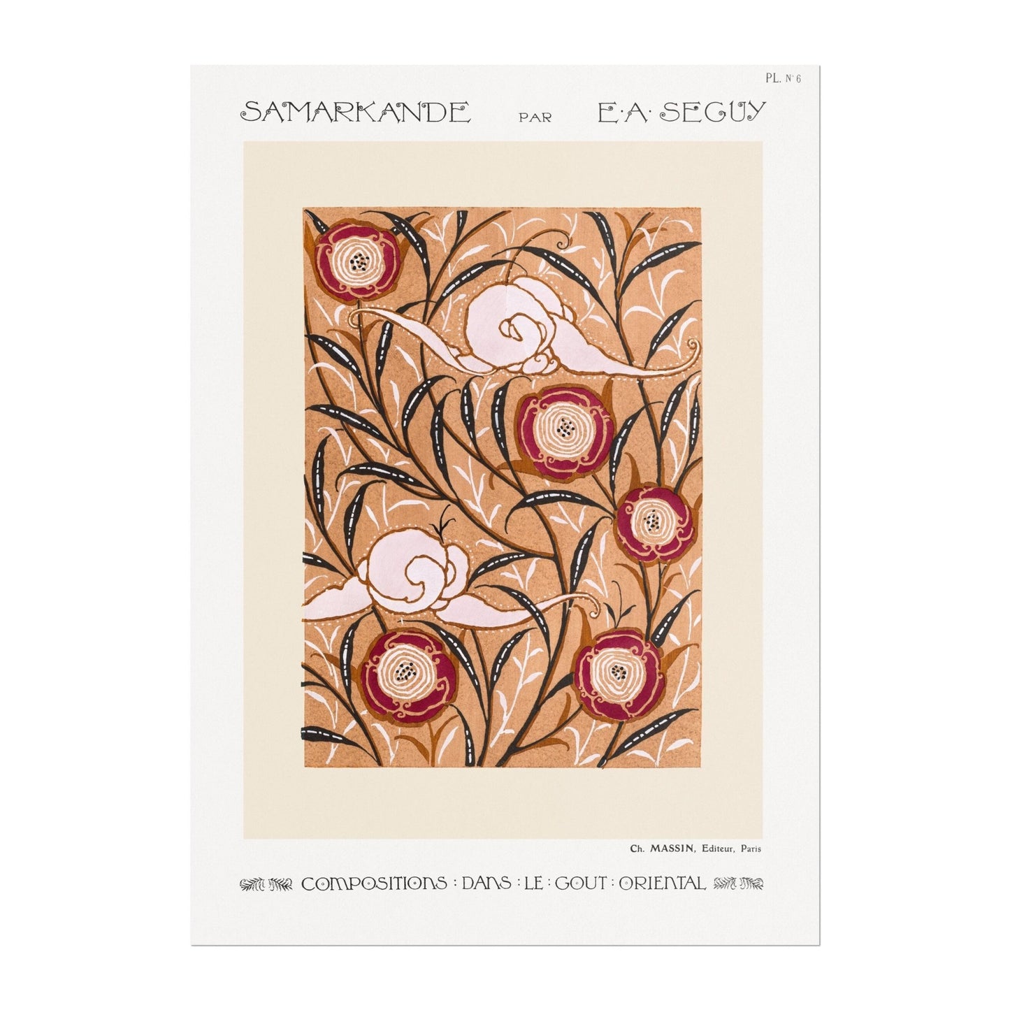An Art Nouveau pattern lithograph from a collection called 'Samarkande' by French artist Eugène Séguy, available to order as a premium giclée art print with a wide range of framing options.