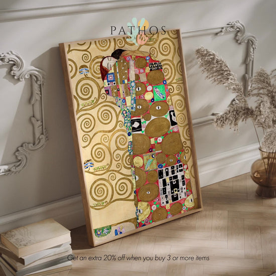 Gustav Klimt's classic oil-on-canvas painting titled 'Fulfillment', available to order as a premium giclée art print with a wide range of framing options.