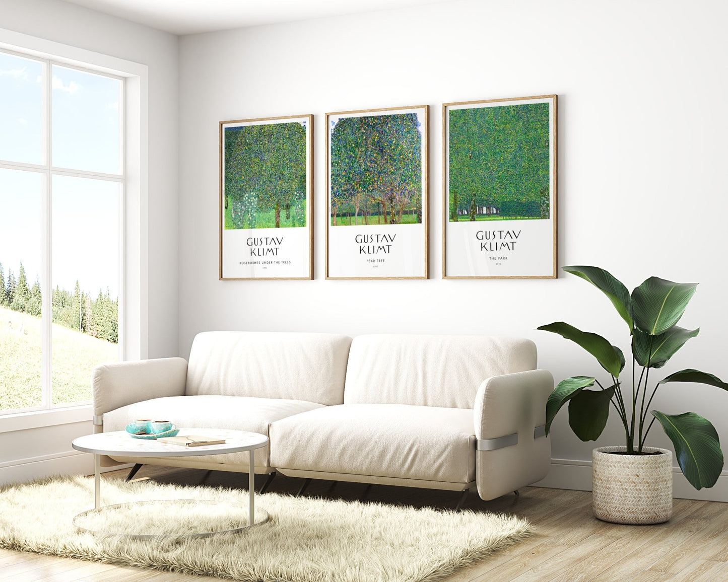 This particular set includes Gustav Klimt's classics 'Rosebushes Under The Trees', 'Pear Tree' and 'The Park'.