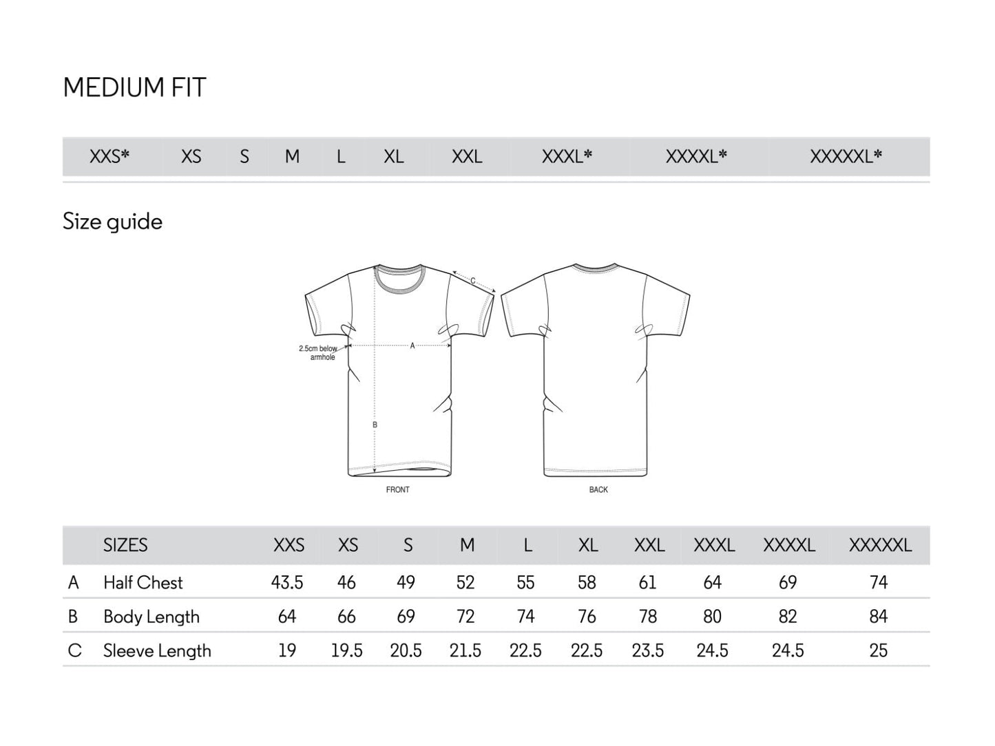 - Premium 180gsm crewneck T-Shirt with signature ‘soft feel’