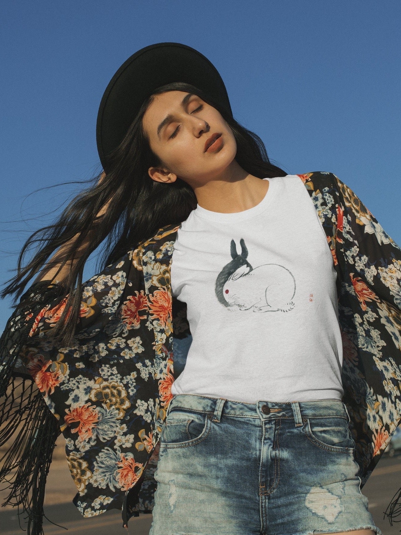 Our signature unisex T-Shirt featuring 'Rabbits' by classic Japanese Artist Kono Bairei.