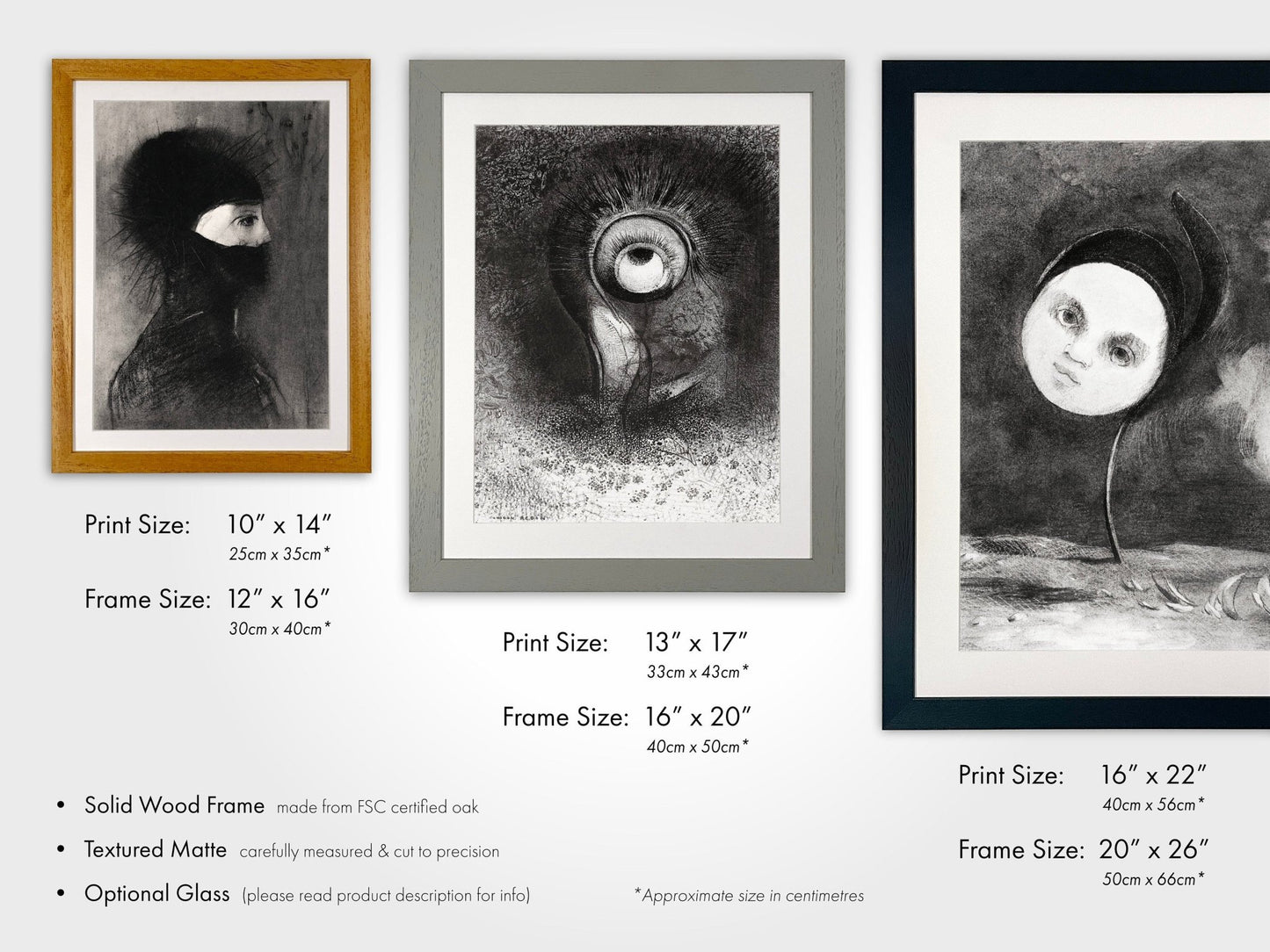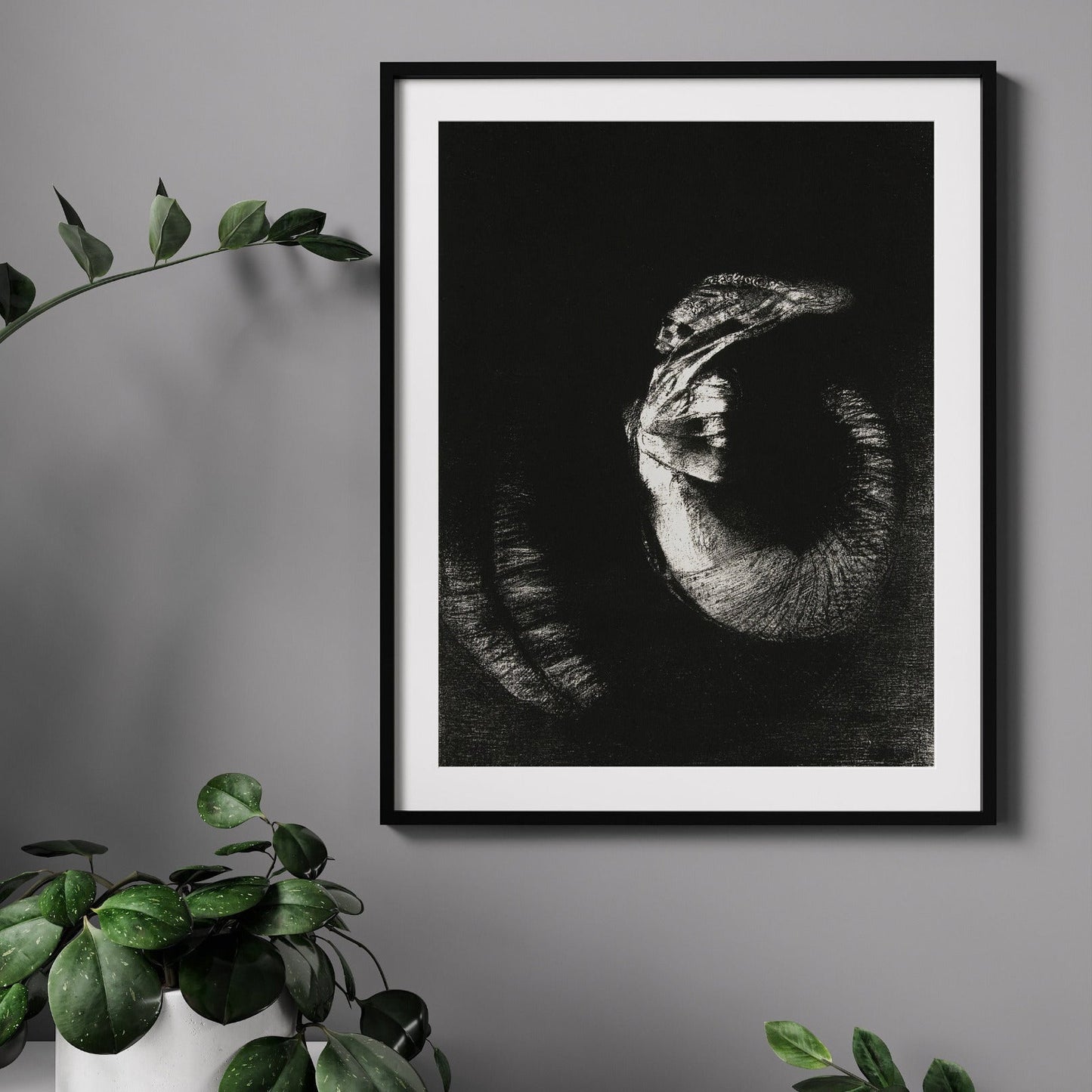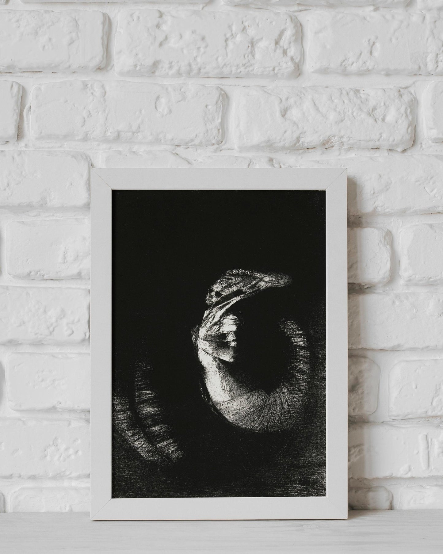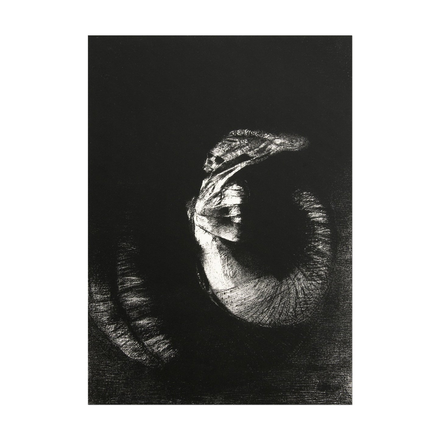 Odilon Redon’s classic gothic artwork titled 'It Is a Skull, Crowned with Roses. It Dominates a Woman’s Pearly–White Torso', available as giclée print and with a variety of framing options.