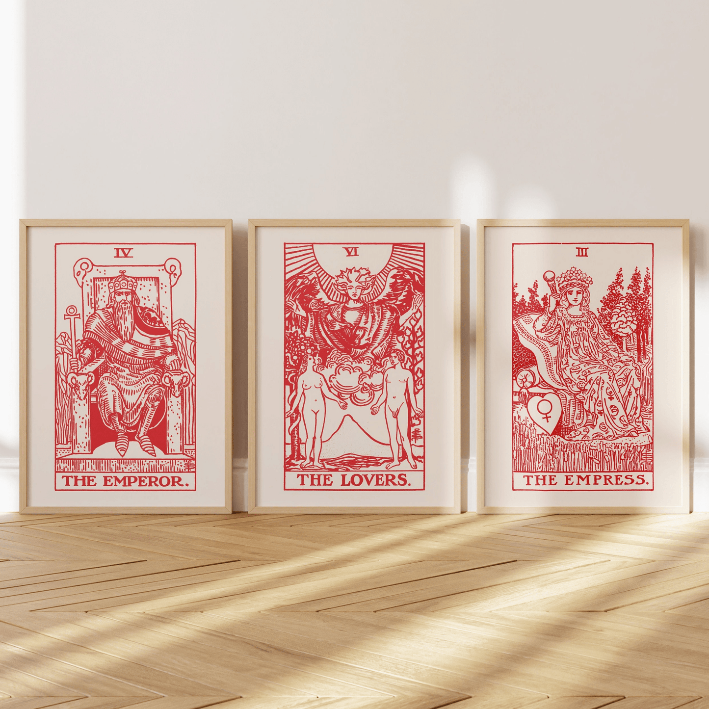 This particular set includes the 3 Tarot Cards 'The Emperor', 'The Lovers' and 'The Empress'.
