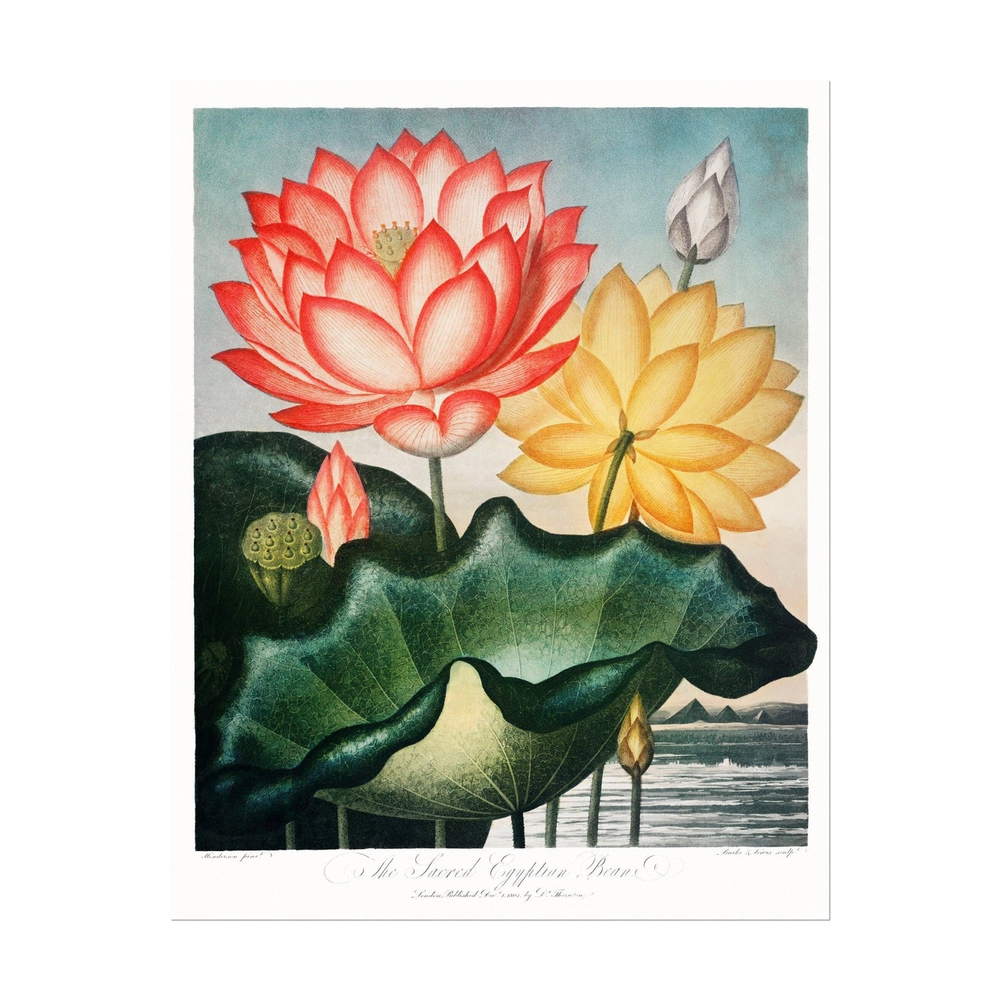 A 19th Century illustration of the Sacred Egyptian Bean featured in 'The Temple of Flora' by English botanical writer Robert John Thornton, available as a high resolution print in a variety of bespoke sizes.