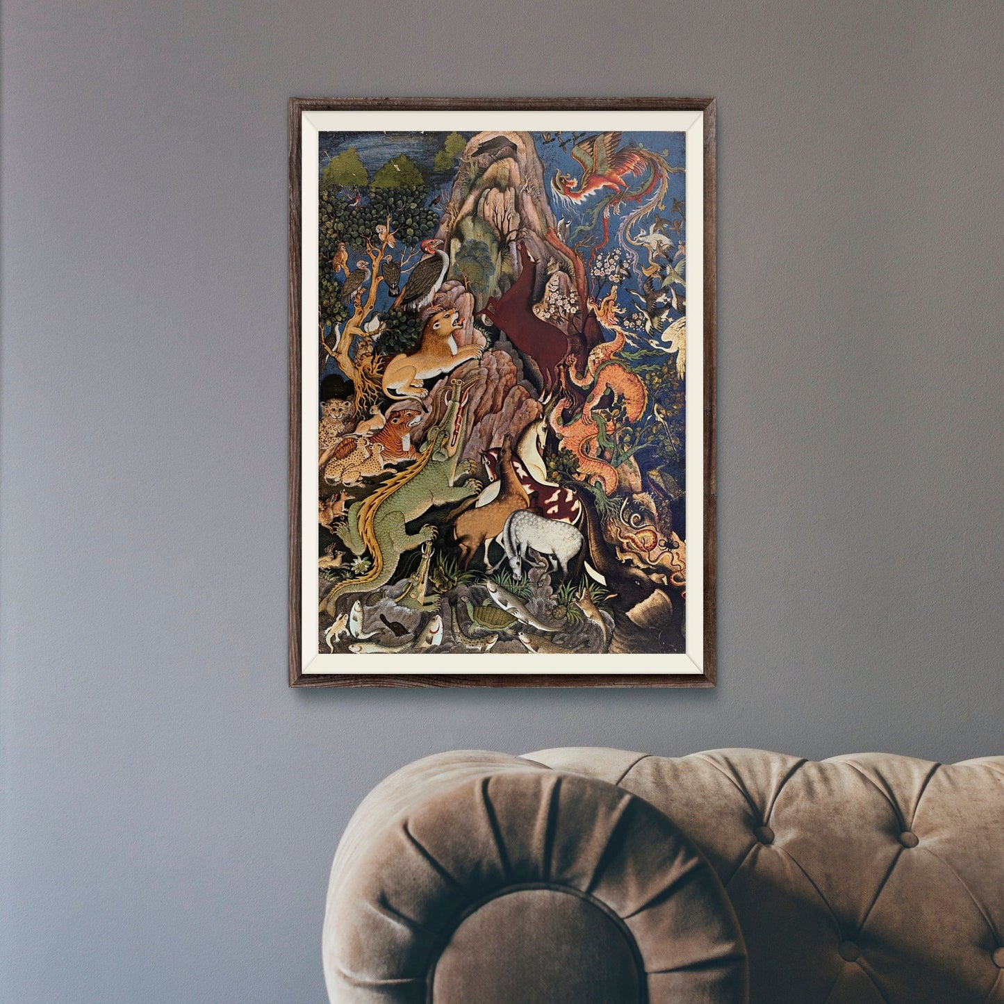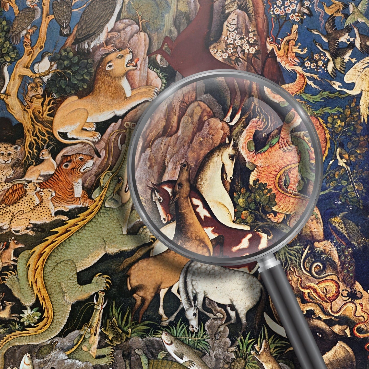 'The Wise Crow Addresses The World's Animals', a traditional 16th Century Indo-Persian illustration by Hindu artist Miskîn.